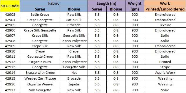 | Note | Stitching available on customer Requirment For Sarees , Salwar Kameez, Lehengha.(i.e M,L,XL,XXL). |