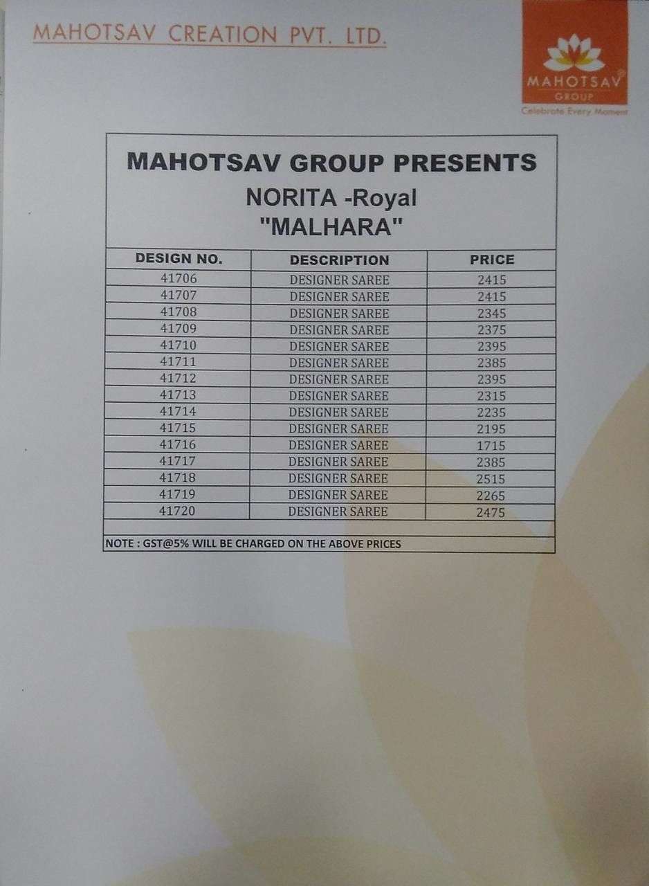mahotsav norita malhara 41706-41720 series party wear sarees