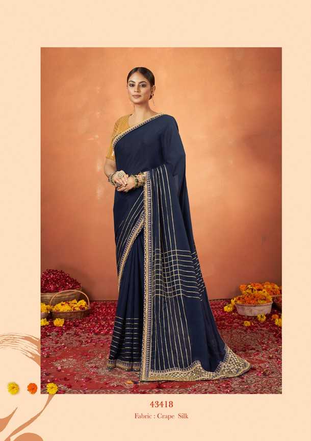 ♻ OUR NEW PARTY WEAR DESIGNER SAREE COLLECTION ♻️ BRAND NAME : MAHOTSAV CATALOG : "NORITA 43400 SERIES-PRADHA PRICE :- 5% GST EXTRA FABRIC -: ATTACHED BLOUSE TYPE : UN STITCHED |