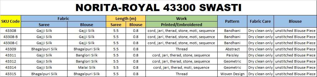 OUR NEW FESTIVE WEAR SAREE COLLECTION ♻️ BRAND NAME : MAHOTSAV CATALOG NAME : NORITA ROYAL "SWASTI" 43300 - SERIES FABRIC : ATTACHED PRICE :