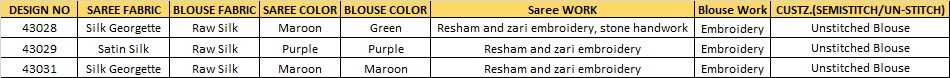 | Note | Stitching available on customer Requirment For Sarees , Salwar Kameez, Lehengha.(i.e M,L,XL,XXL). |