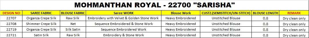 ♻ OUR NEW DESIGNER SAREE COLLECTION♻️ BRAND NAME : MAHOTSAV CATALOG NAME : MOHMANTHAN SARISHA 22700 SERIES PRICE : * + 05%GST |