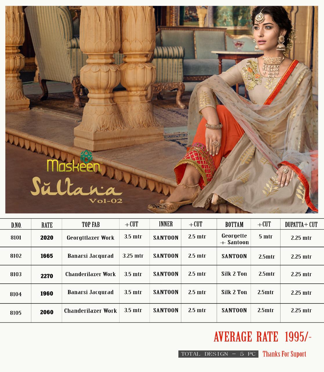 Brand - Maiisa Maskeen. Catlog name - Sultana Vol -2. Series -8101 to 8105. GST 5 Percent Extra z Delivery date - 23-09-19 |