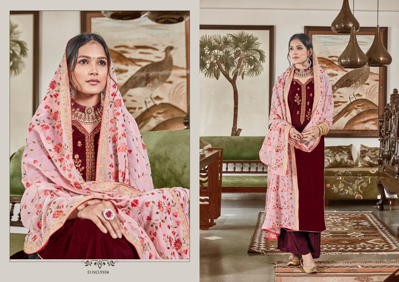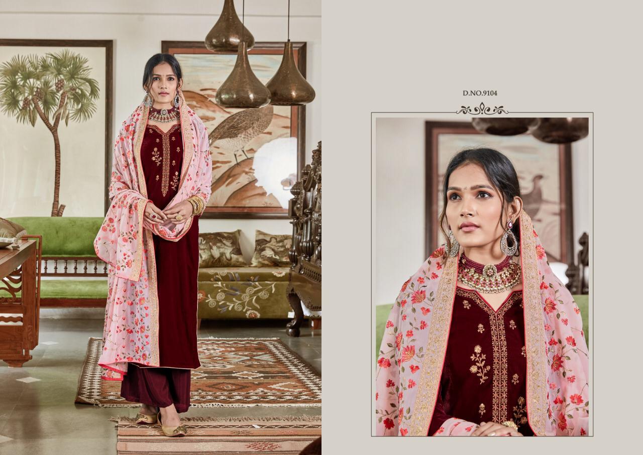 Catlog name - SWARAGINI VOL 2 . Series - 9101 to 9106 Velvet New Collecition. Delivery 5-6 days |