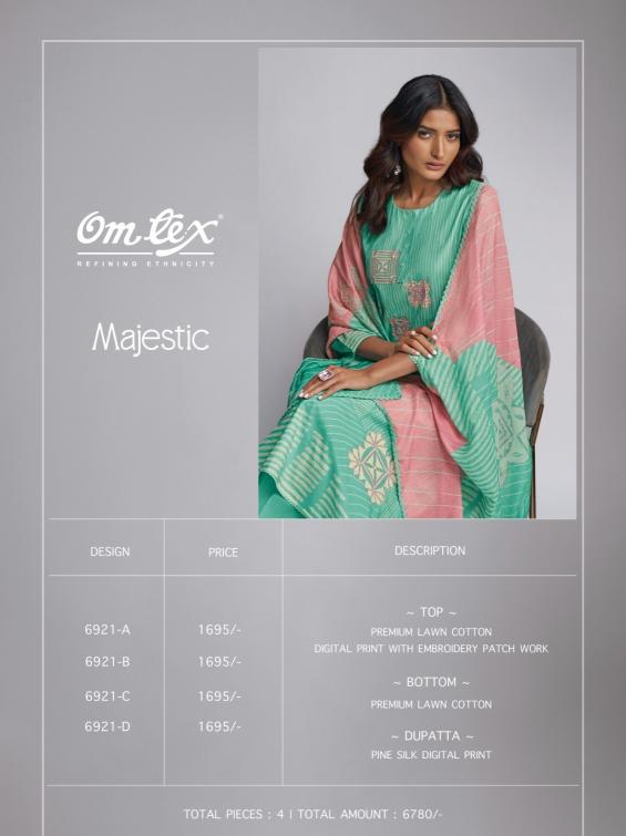 Om Tex Presents Latest Collection Launched on 10-02-2025. Presenting Beautiful collection of 4 PCS with Unstitched .