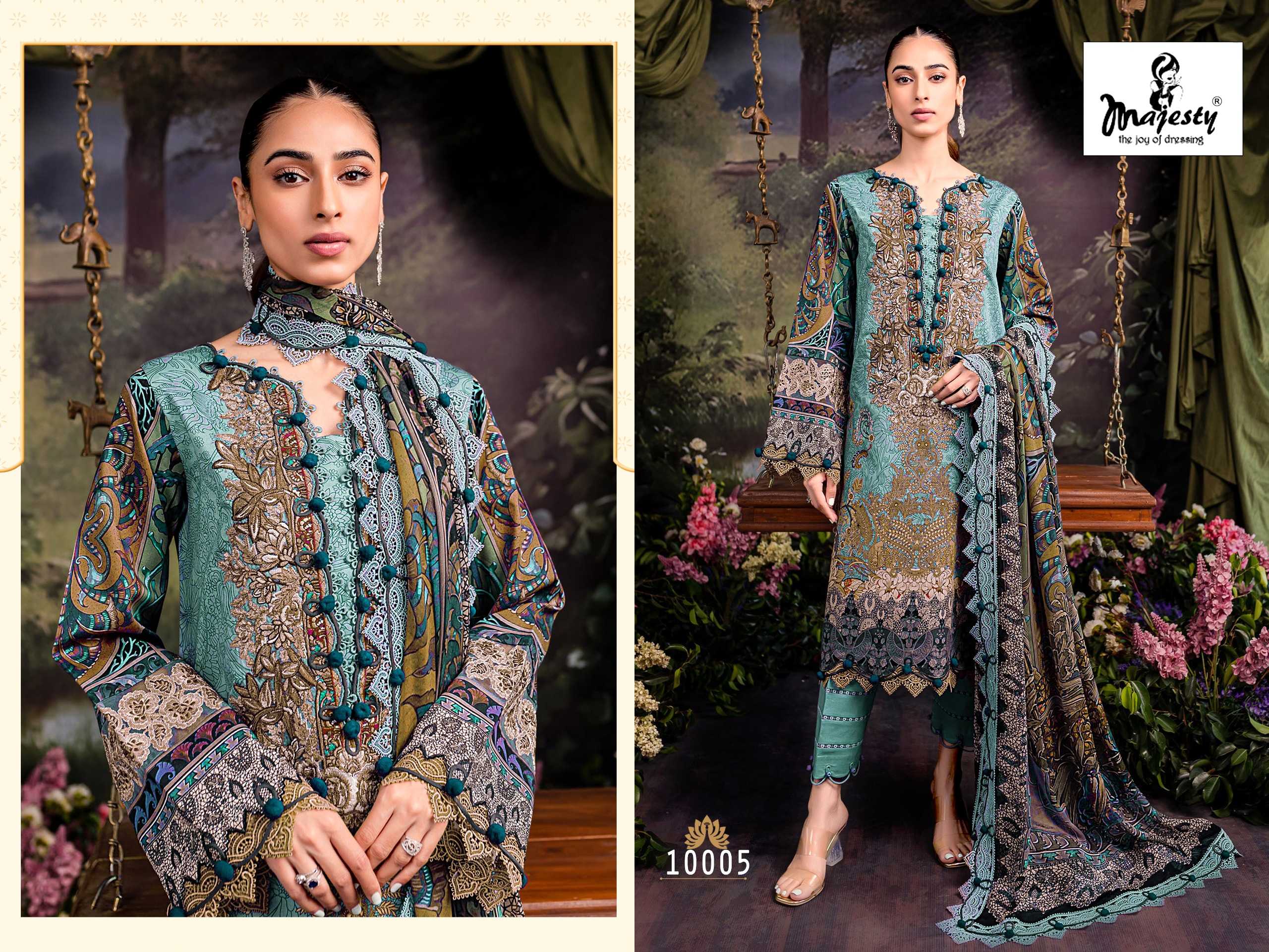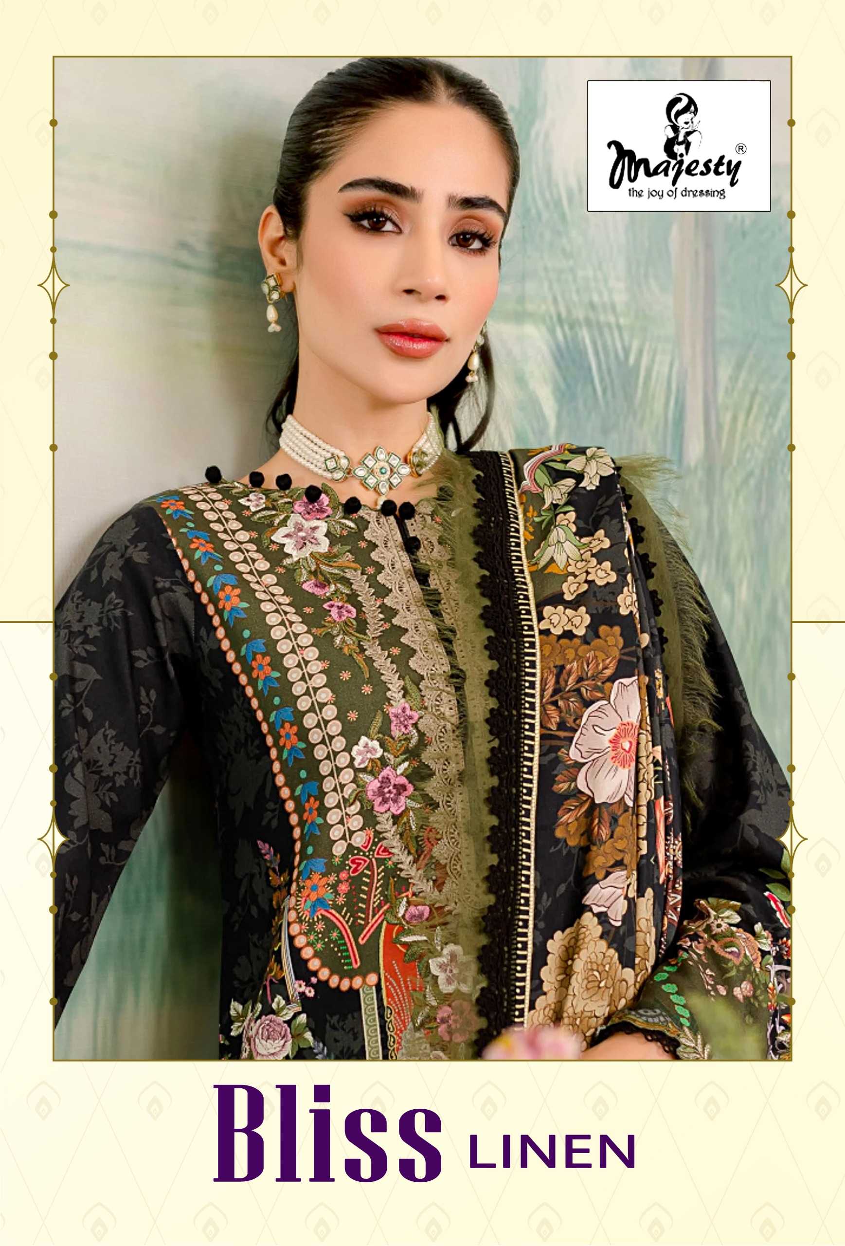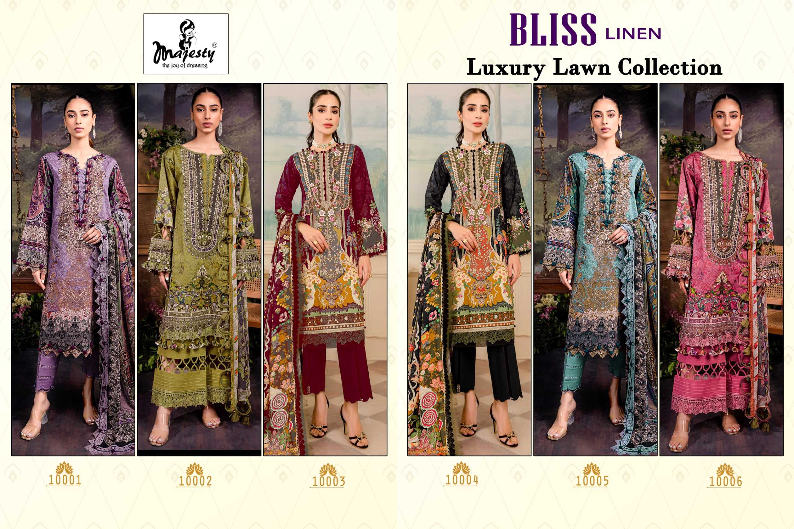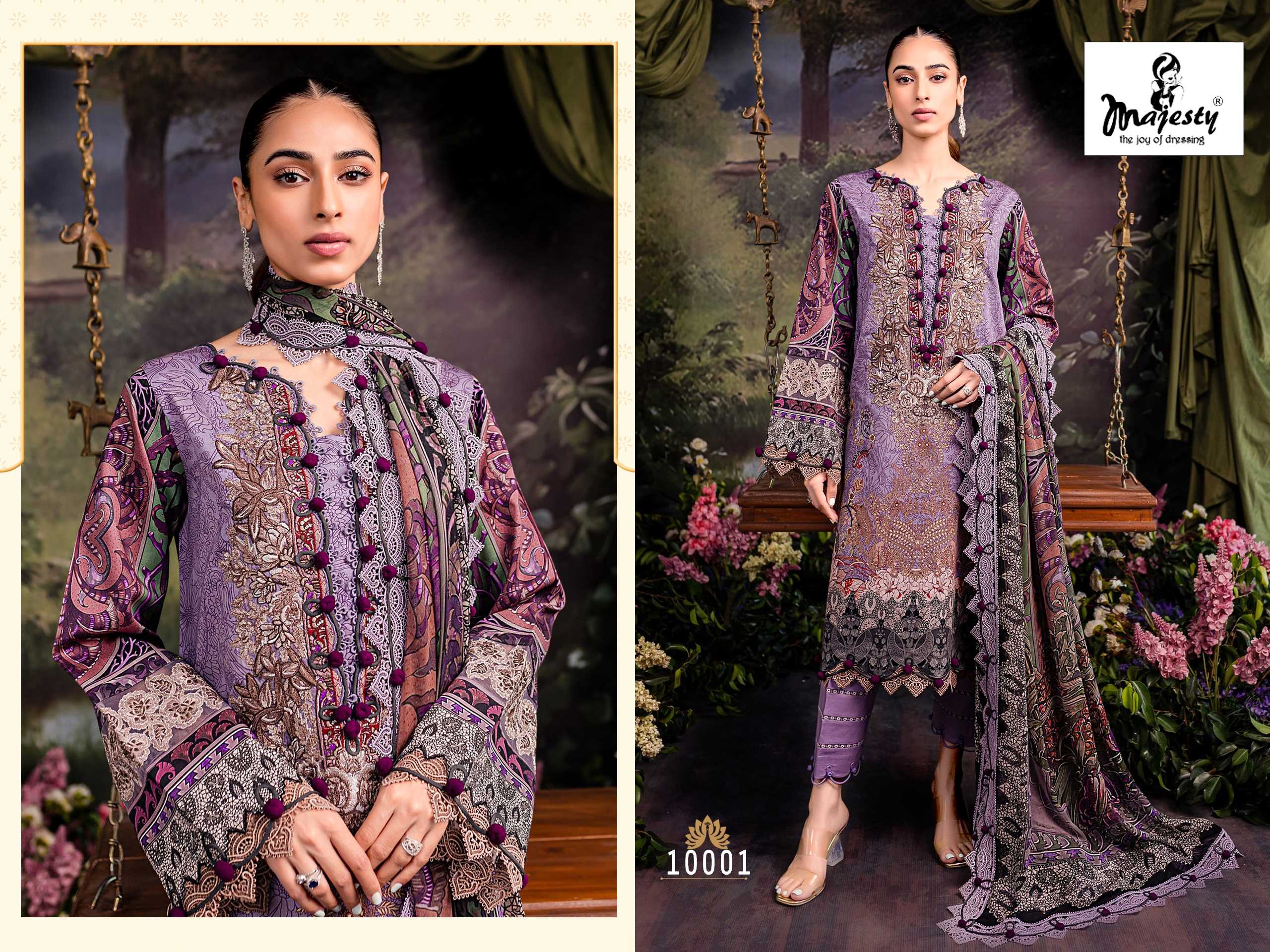 majesty bliss linen pakistani lawn collection print with patch embroidery unstitch suit