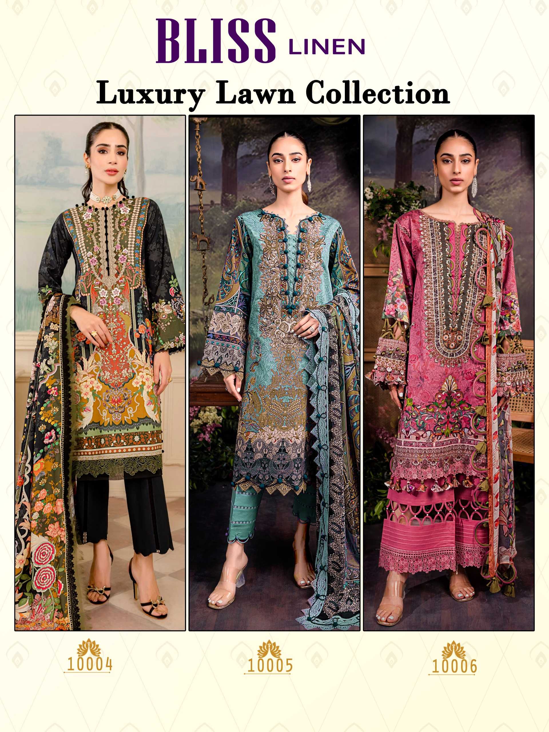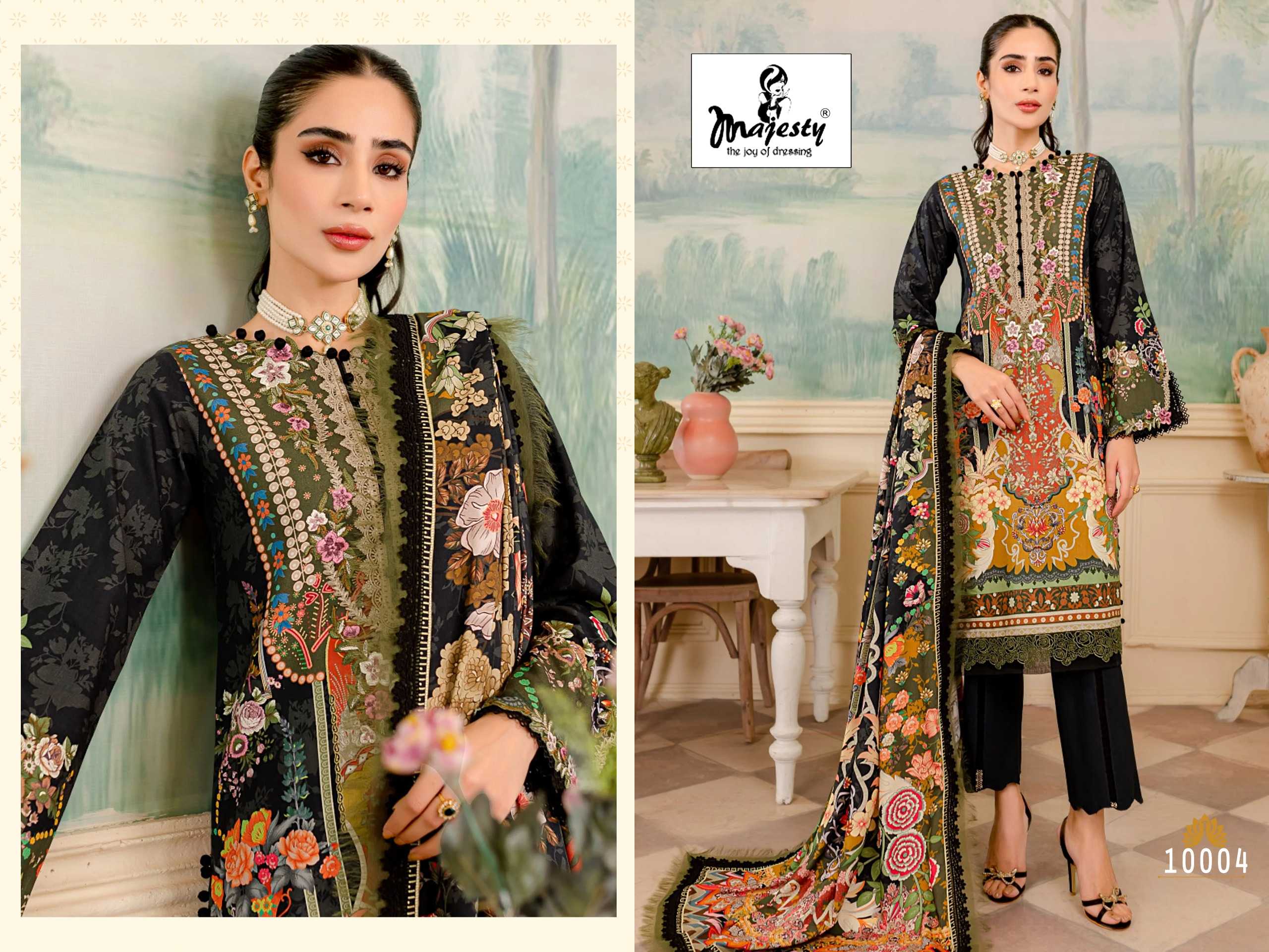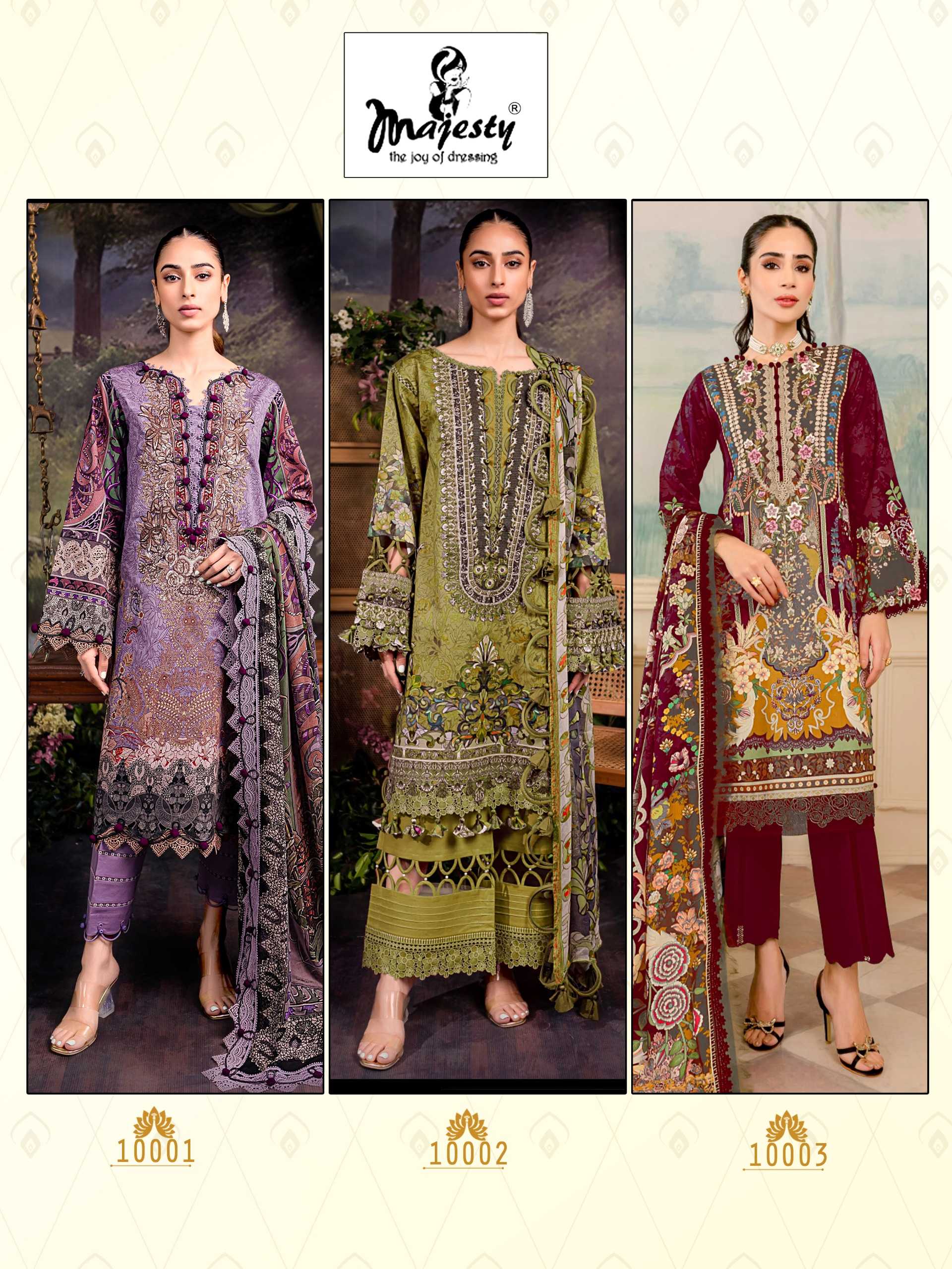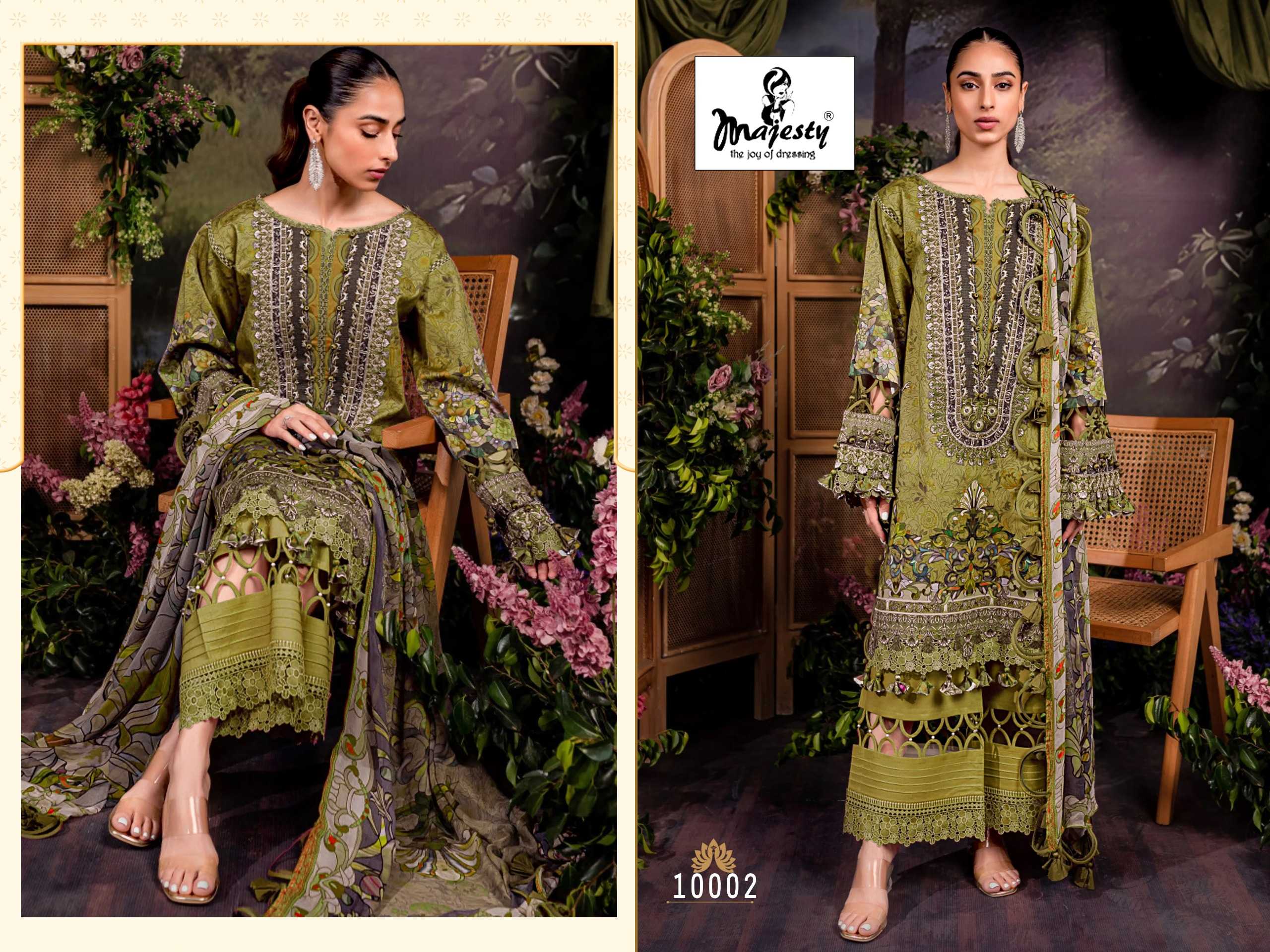 majesty bliss linen pakistani lawn collection print with patch embroidery unstitch suit