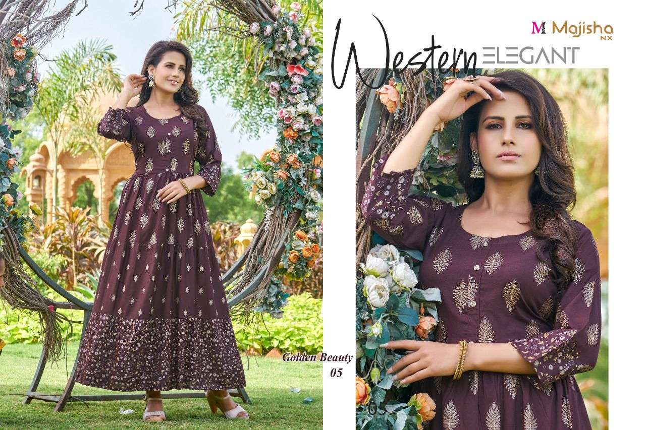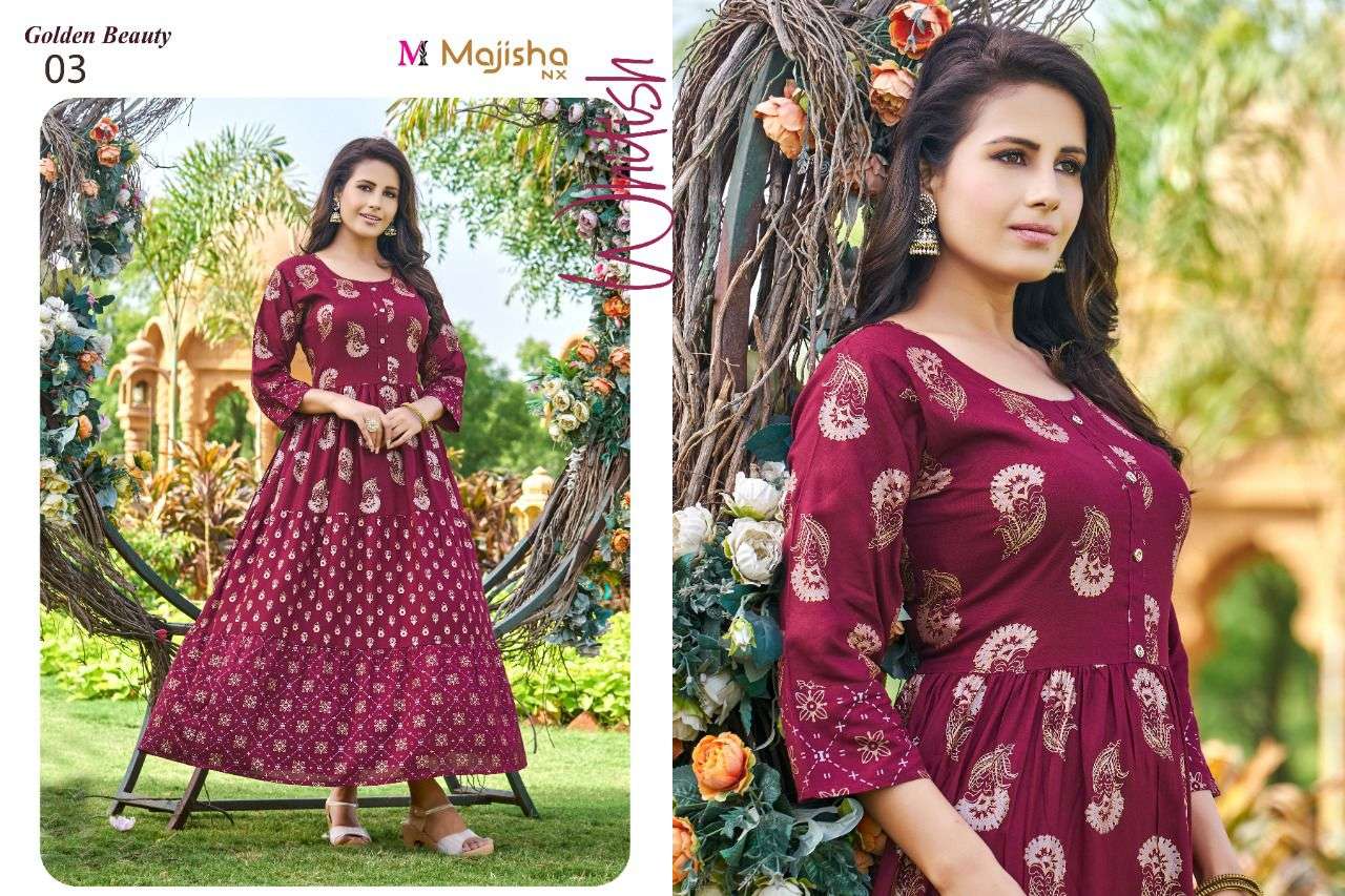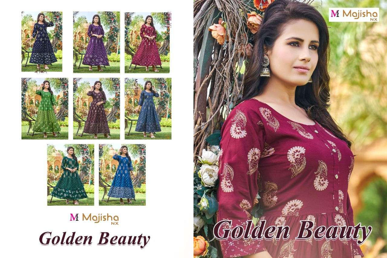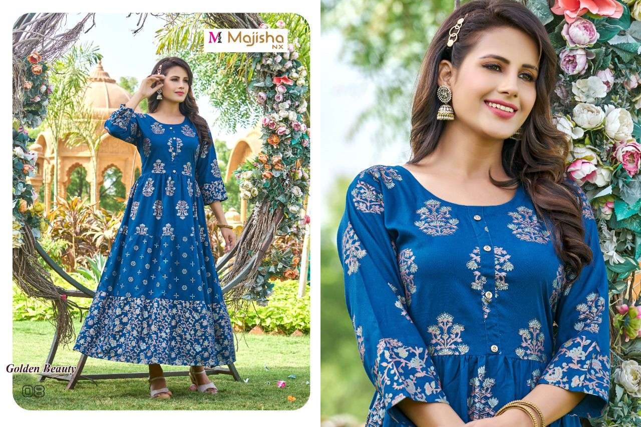 Majisha nx. ....❤❤ Presenting our new catalogue 🌟GOLDEN BEAUTY🌟 Fabric Detail⬇ 💃Designs: 8️⃣ pcs catloge Rate:- 5️⃣9️⃣9️⃣/--- ⏱Dispatching- ready |