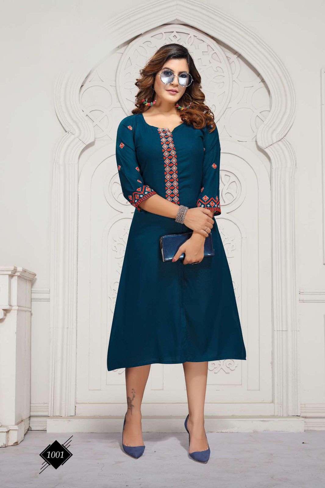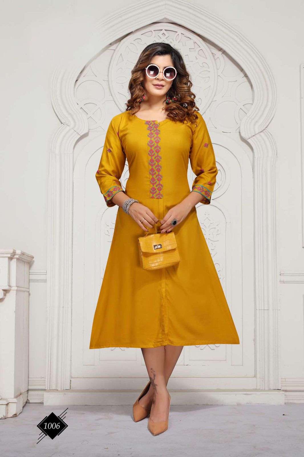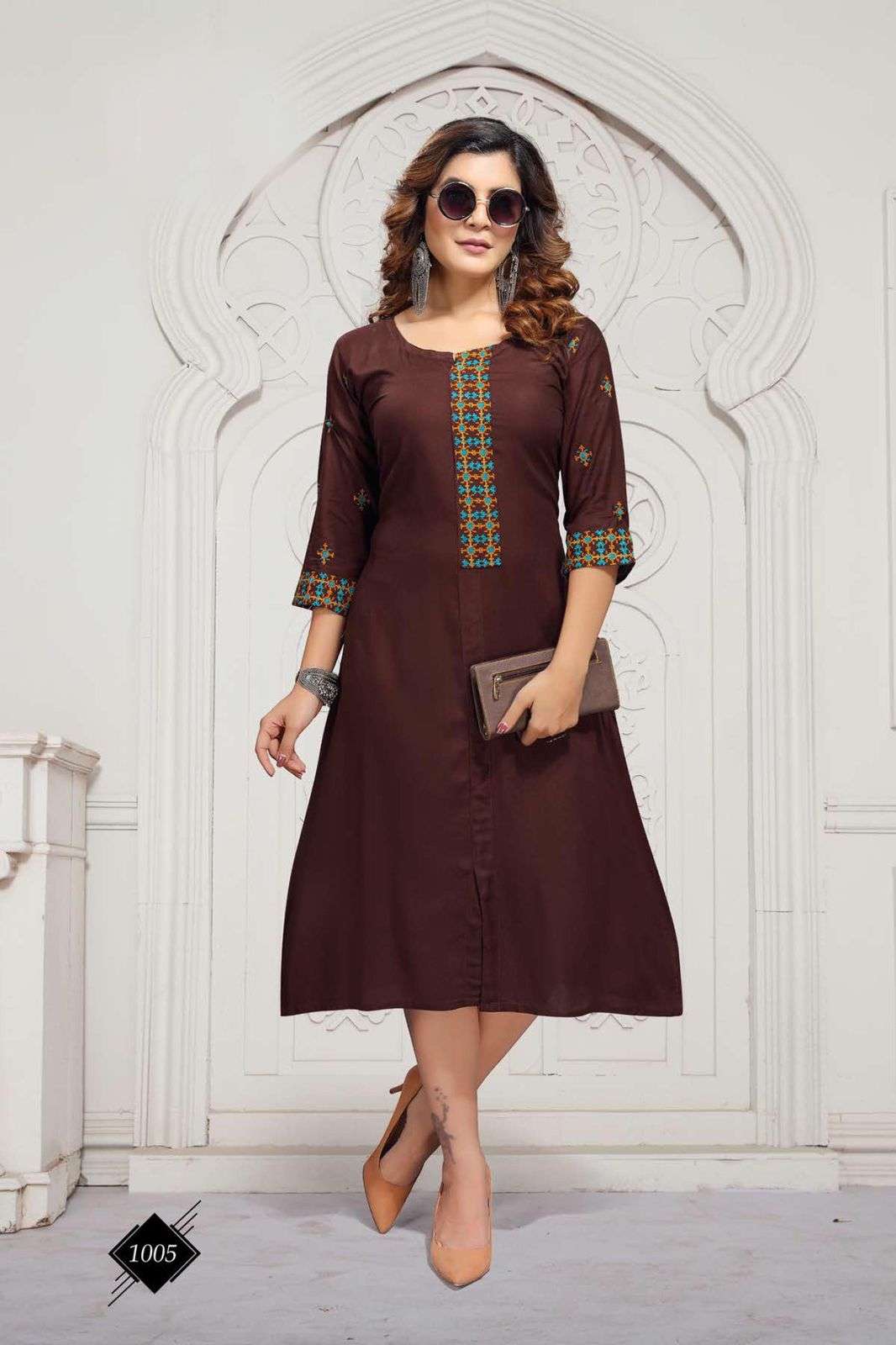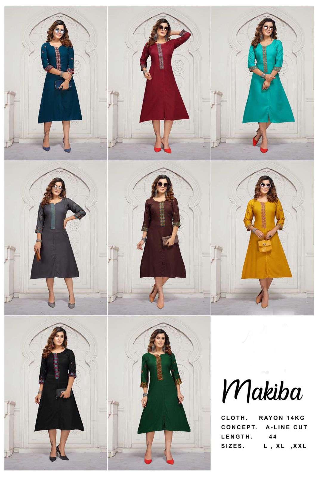 MAKIBA BY TRENDY HEAVY RAYON A-LINE CUT KURTI CATALOG WHOLESALER BEST RATE