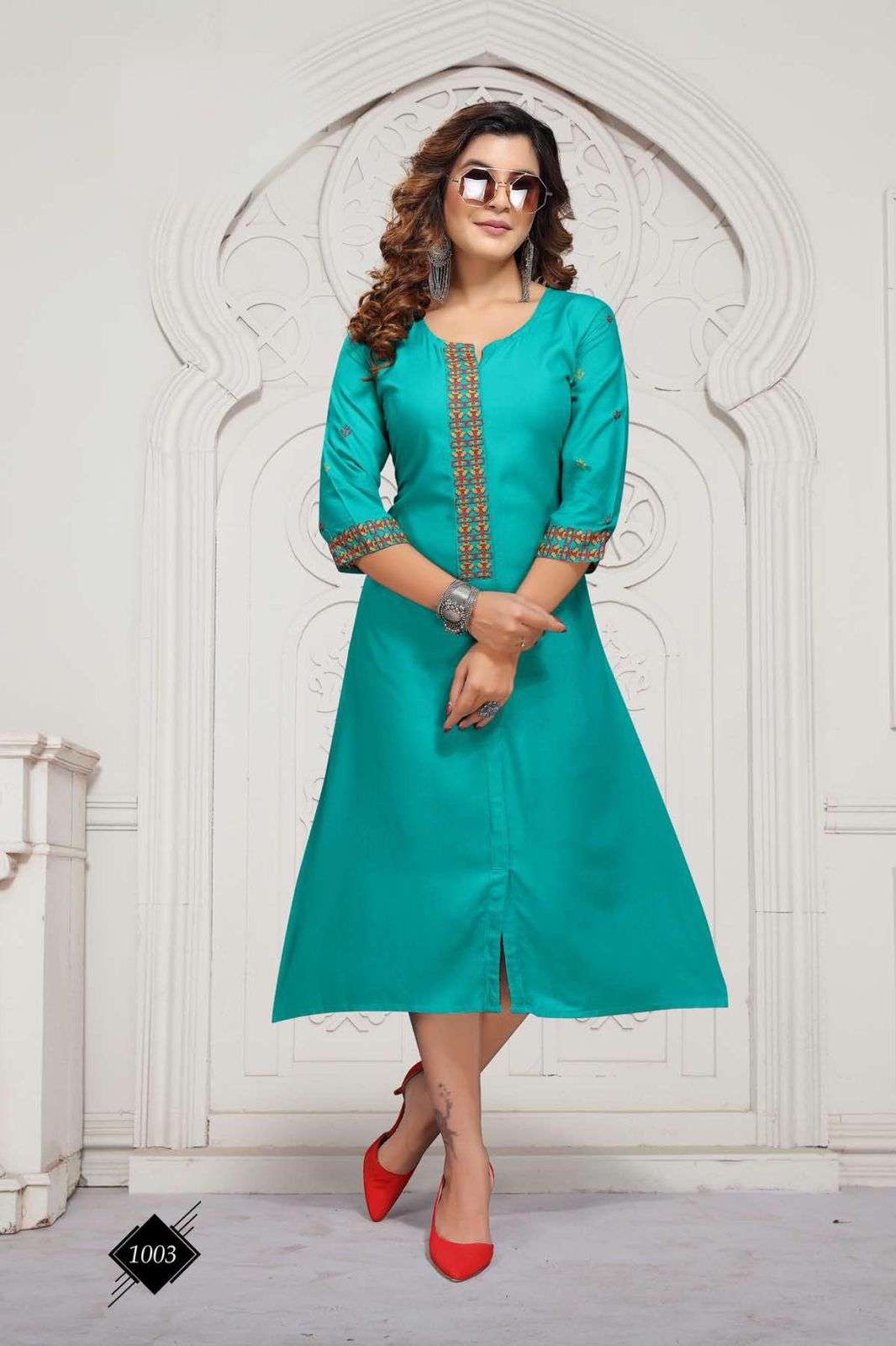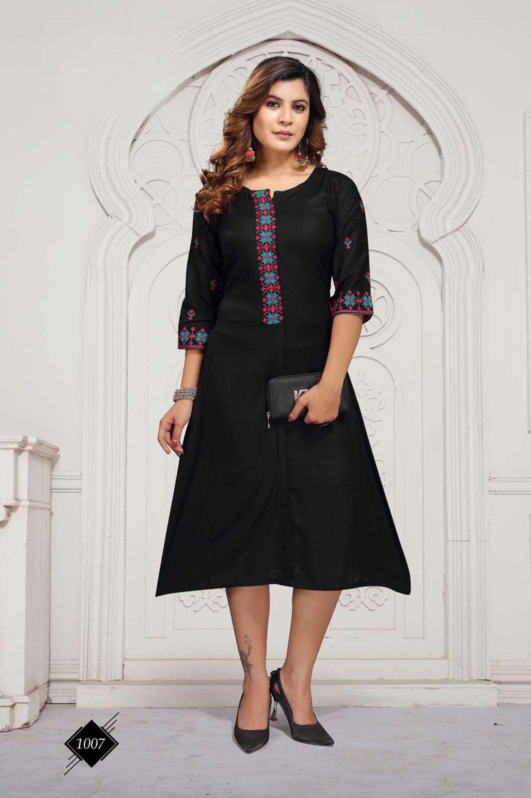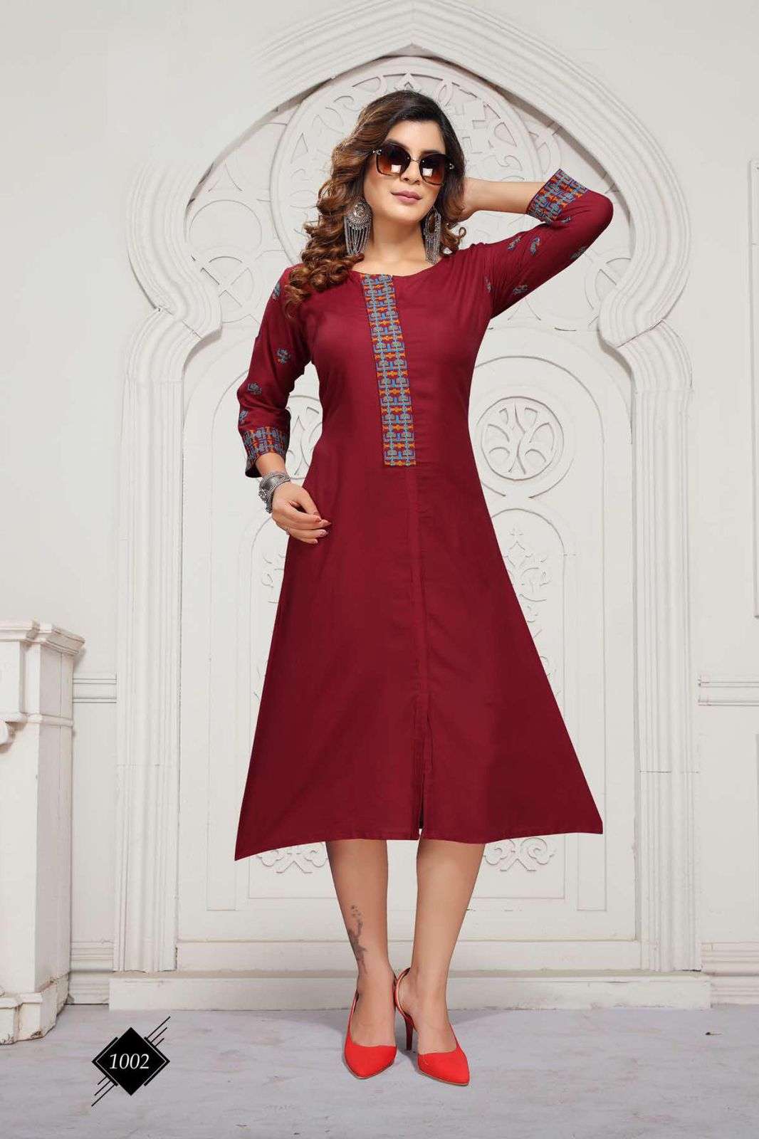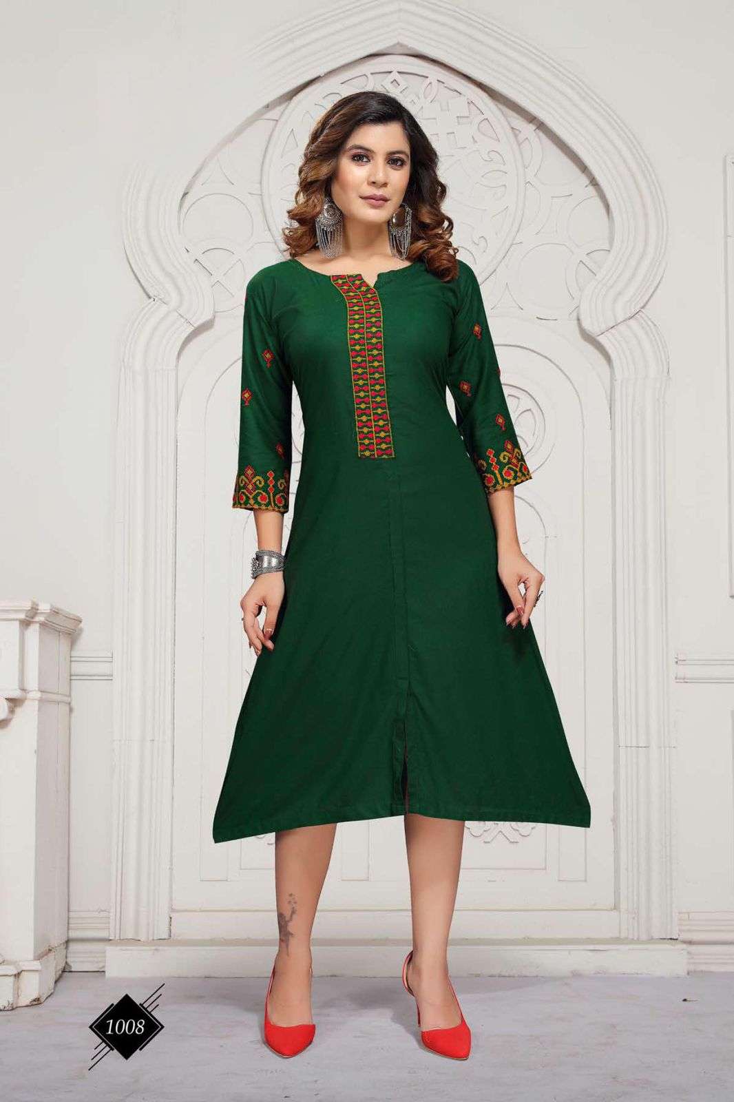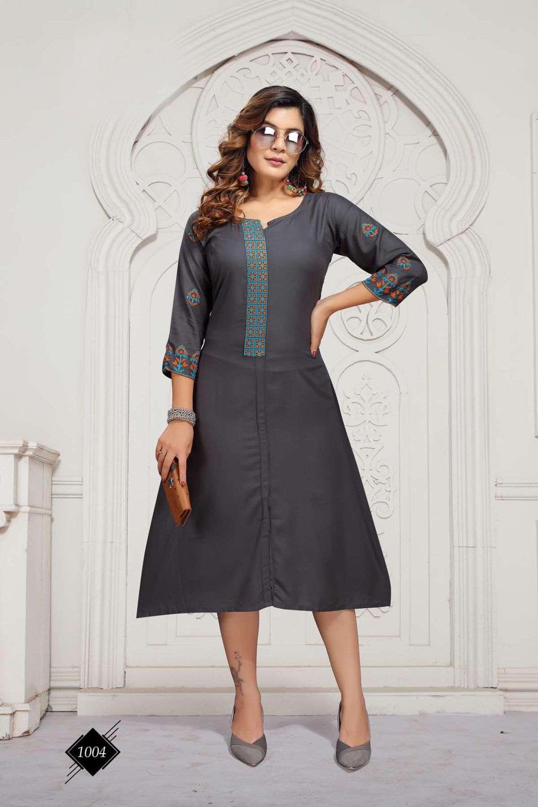 MAKIBA BY TRENDY HEAVY RAYON A-LINE CUT KURTI CATALOG WHOLESALER BEST RATE
