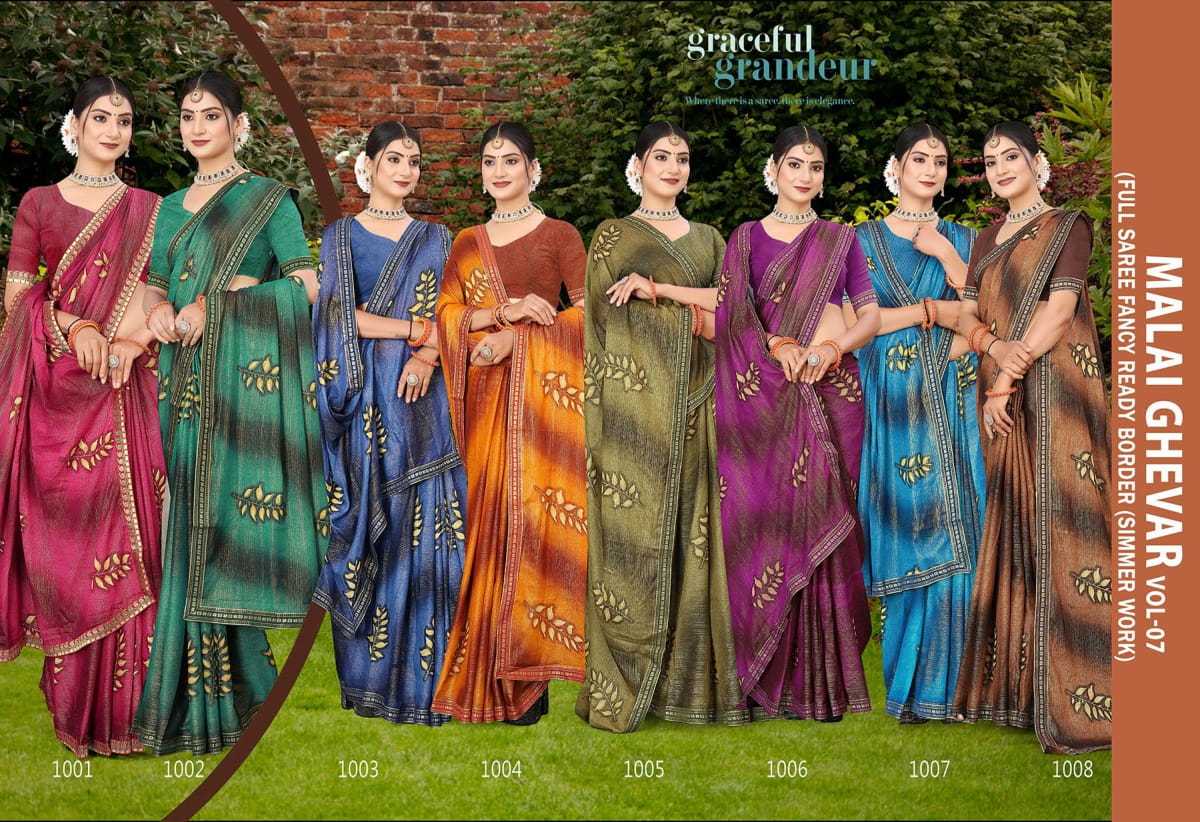 malai ghevar vol 7 by madhupriya 1001-1008 simmer with swaroski work fancy saree