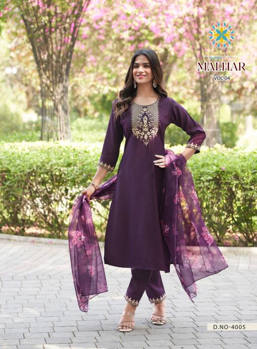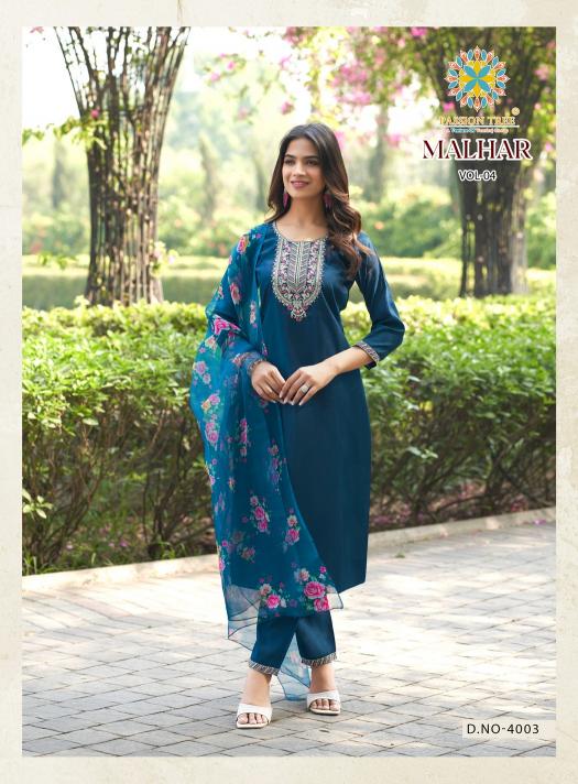 malhar vol 4 by passion tree roman silk fully stitch big size modern salwar suits