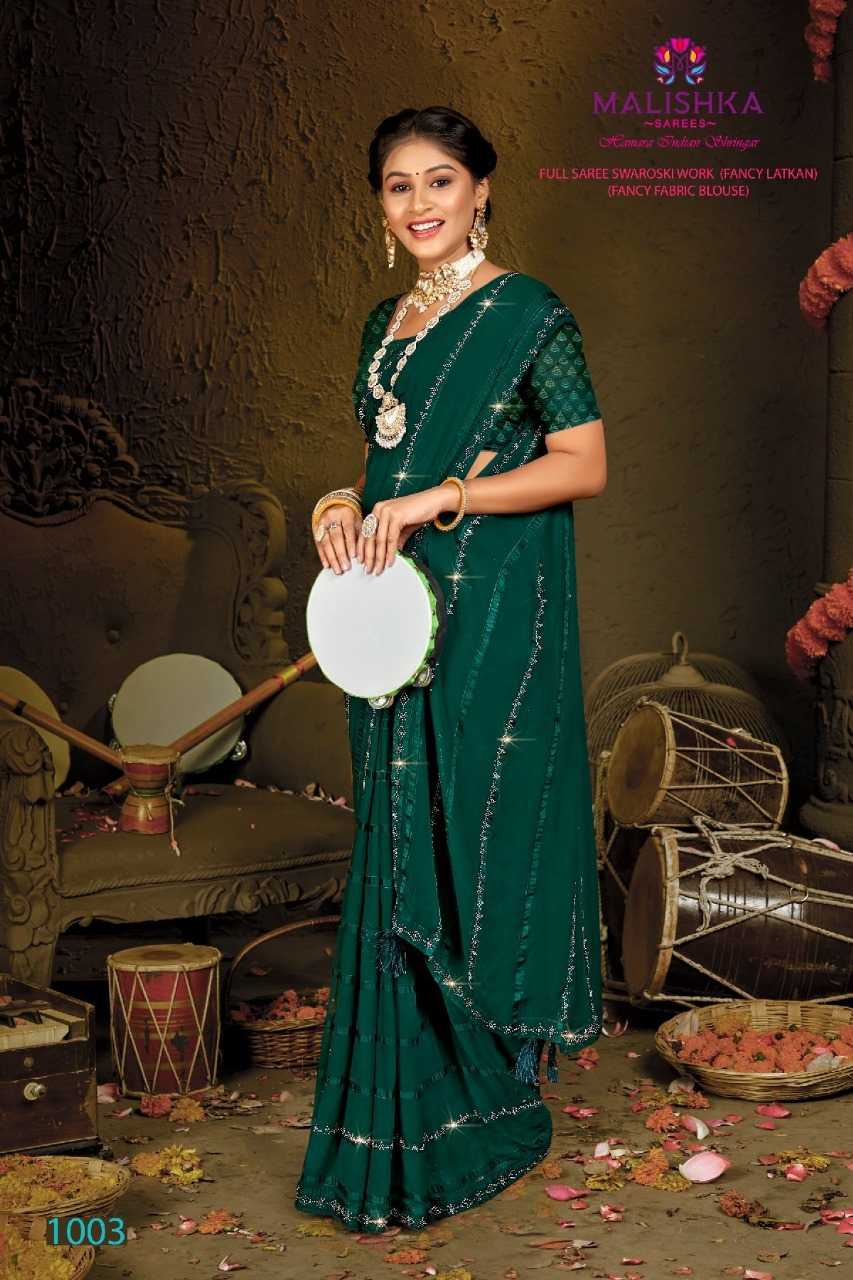 malishka sarees rangoli vol 3 fancy weightless sarees with crape blouse online trader