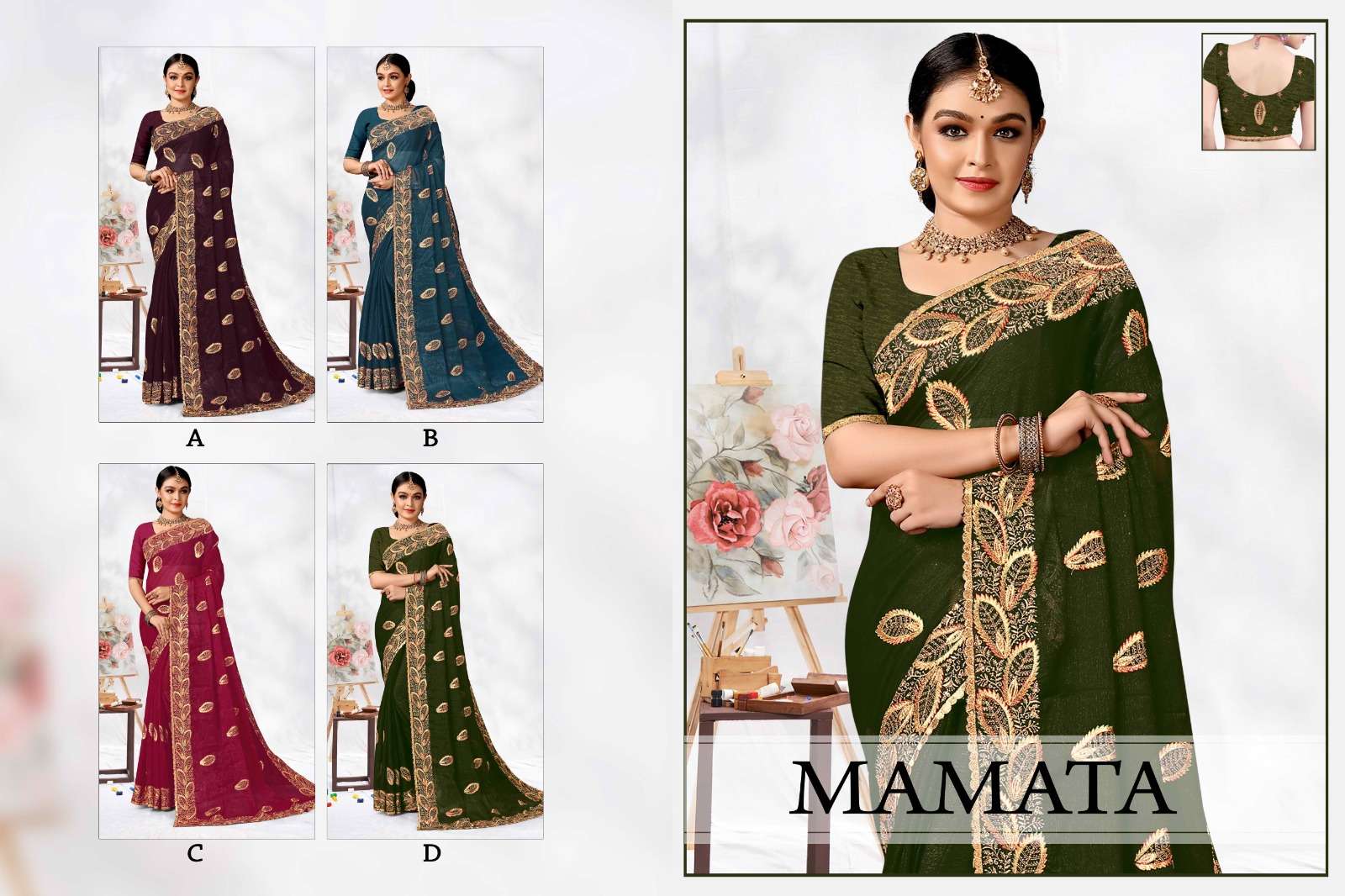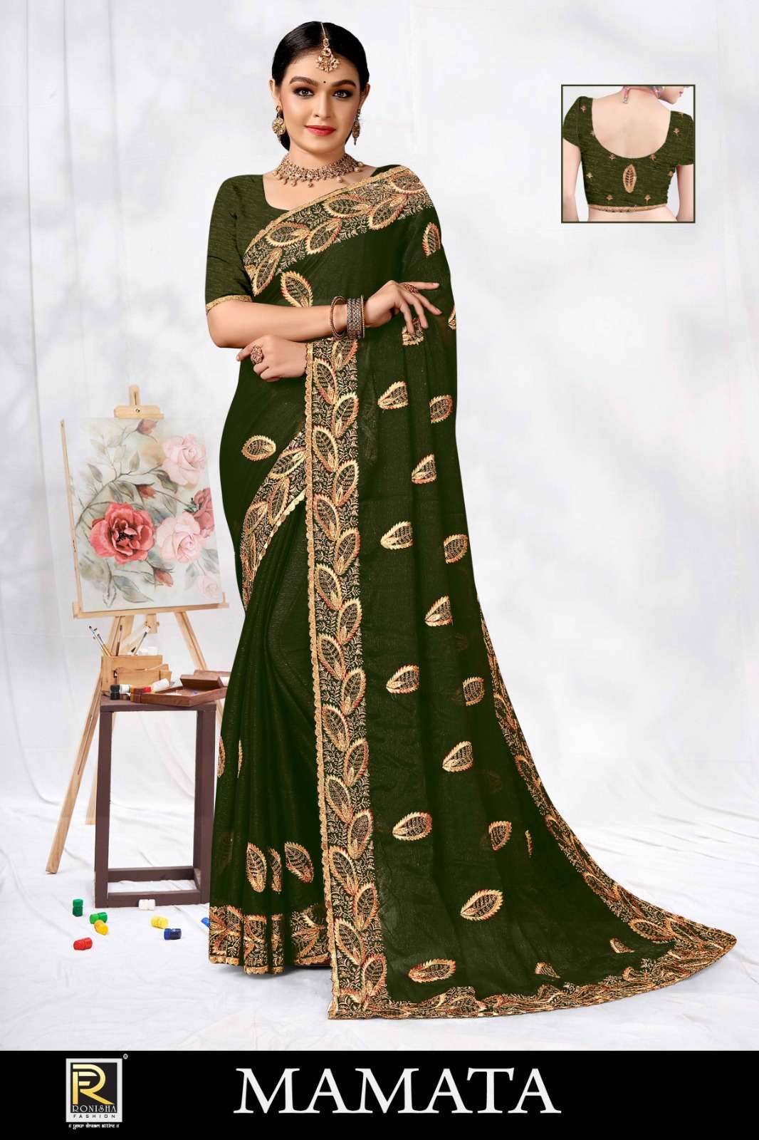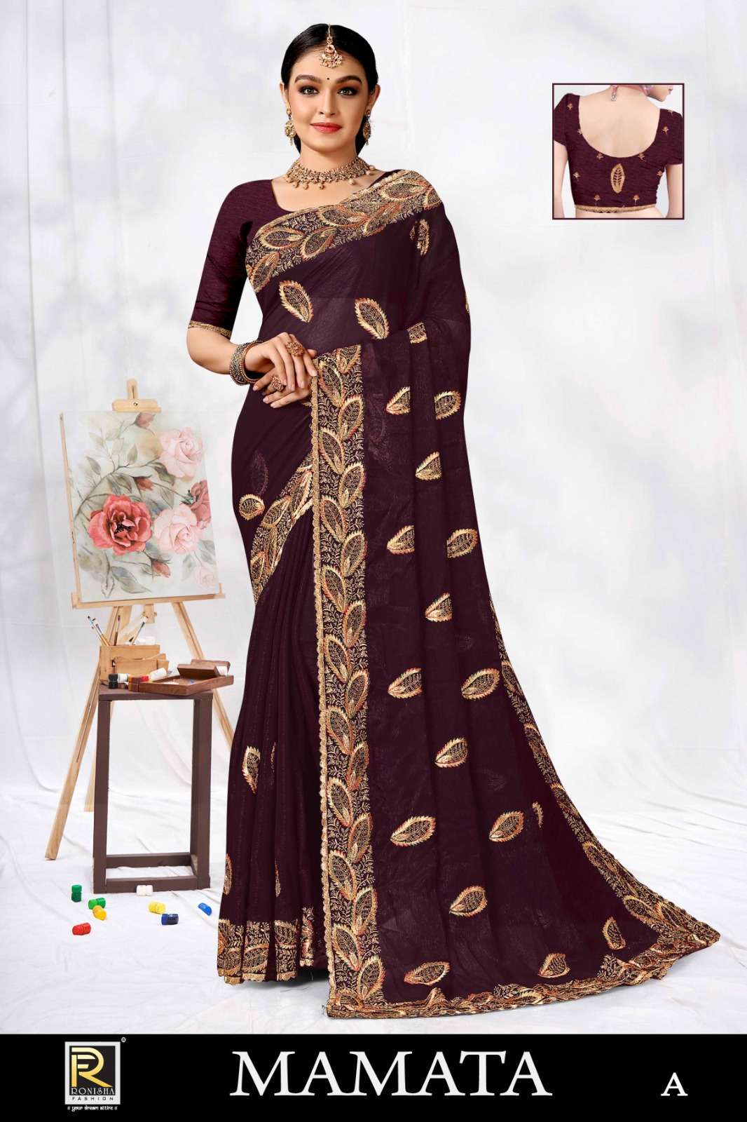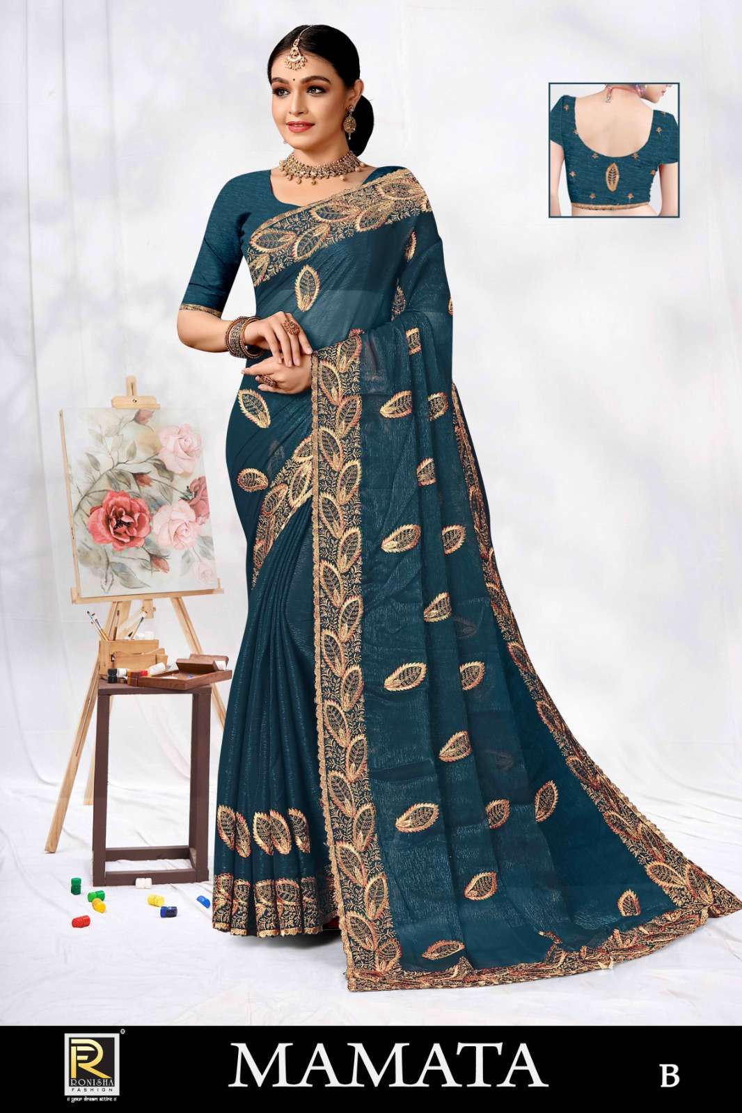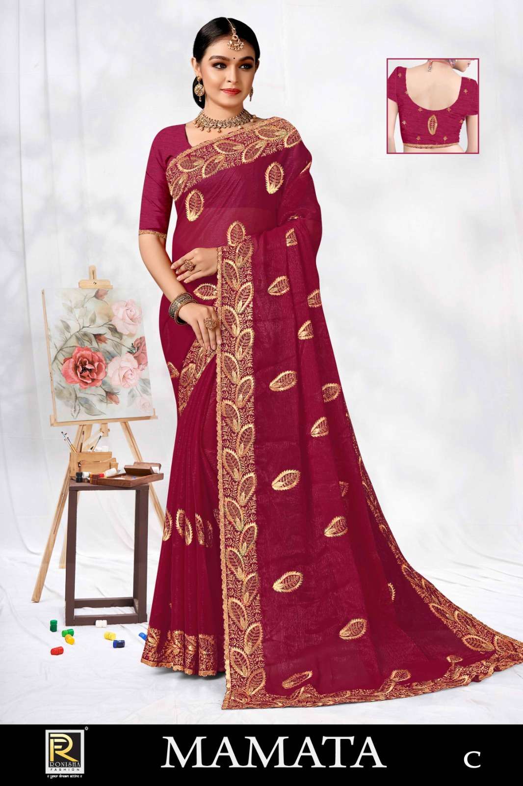 MAMTA BY RANJNA SAREE FANCY FABRICS SELF PETTERN WITH EMBROIDERY WORK AND SIROSKI DIAMOND WORK SUPER HIT COLLECTION