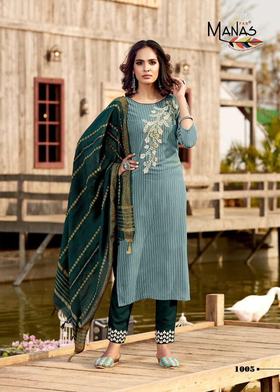 Manas Glamour City Rayon Full Stitch Kurti Pant With Dupatta