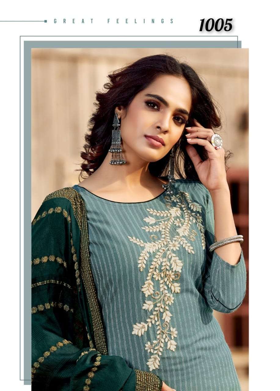 MANAS FAB Catalogue name - Glamour City Details Top Fabrics -*Top Dyed stripe Reyon With coding embroidery work Bottom fabric- Rayon 14 kg With coding embroidery Lace Duptta Fabrics: Fancy Fabrics (2.25 mt ) cut Work: coding embroidery work Top Length ; 46 + Bottom Length; 38 + Size -  M(38), L(40), XL(42), XXL(44),3XL(46) Designs - 6 pcs Rate : -899 5% GST+ship Dispatch .2 to 3 day |