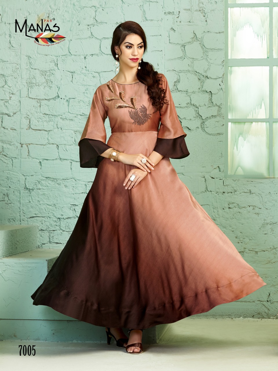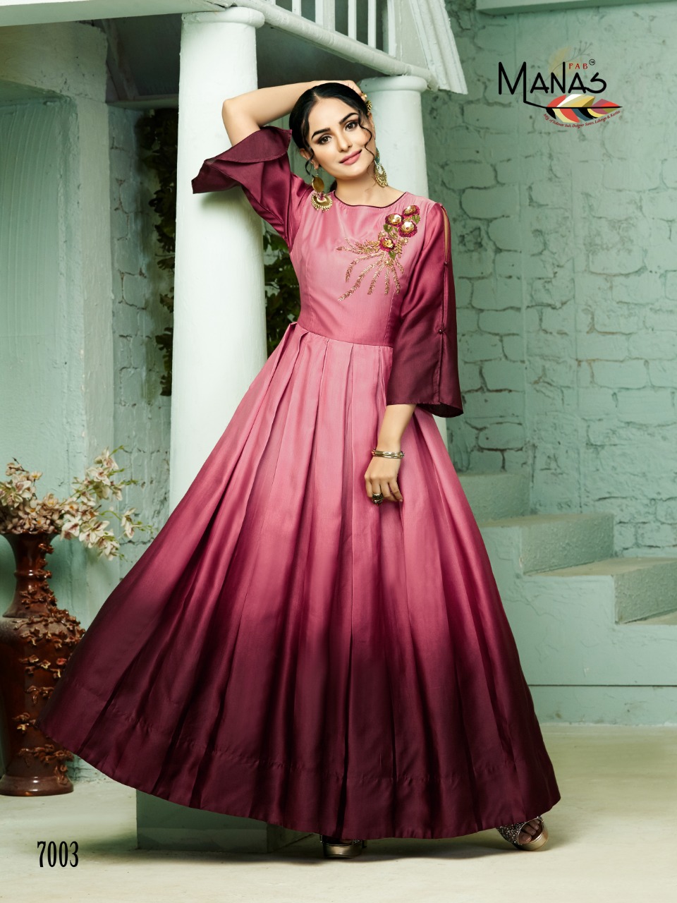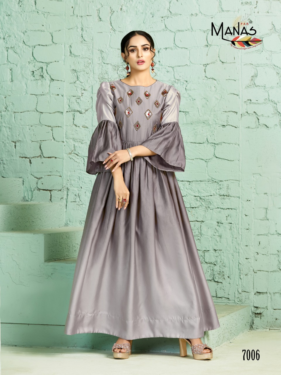 Manas Launch Zaira Fancy Silk Long Gown Style Kurti Wholesale Exporter In Surat