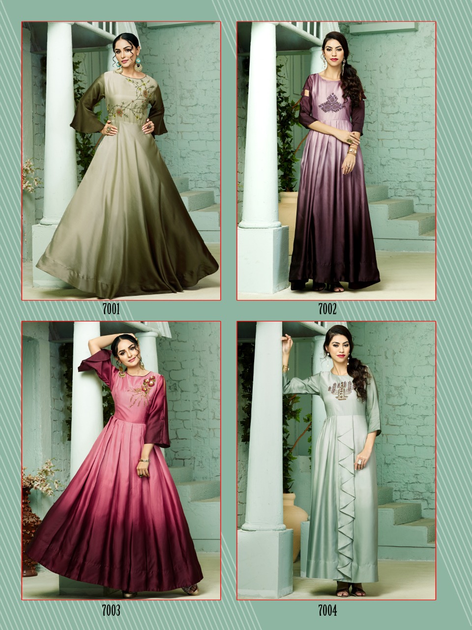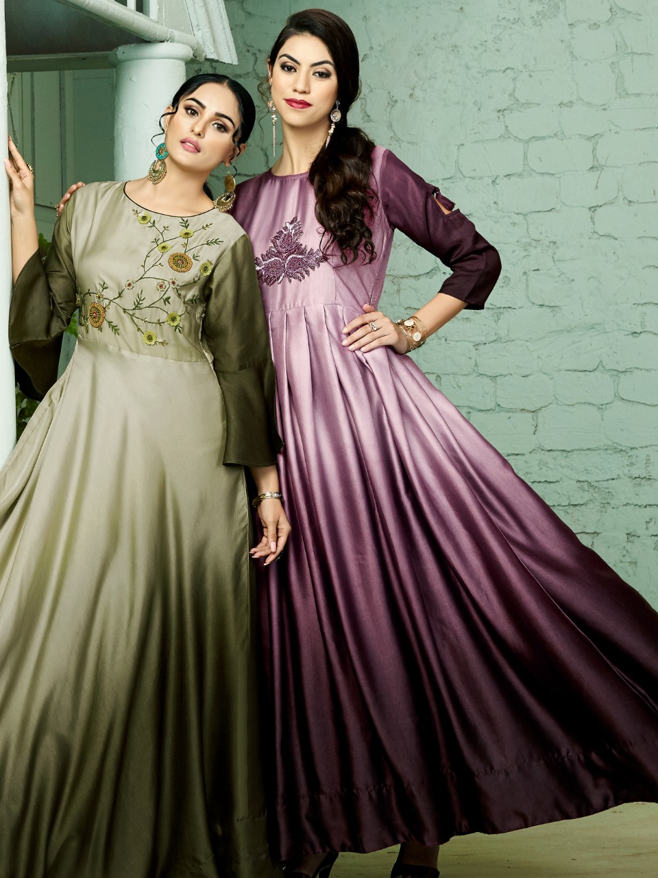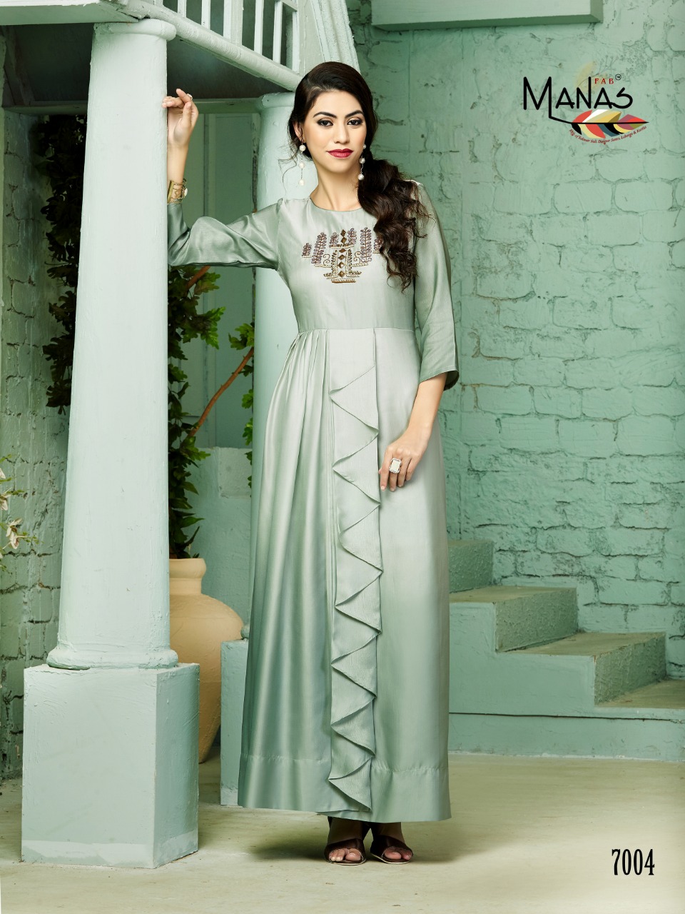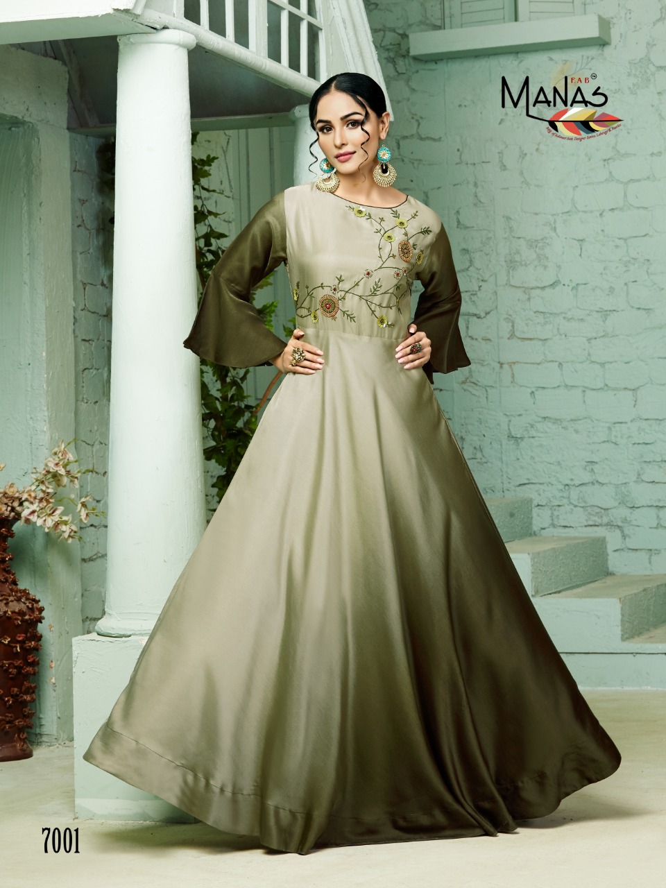 Manas Launch Zaira Fancy Silk Long Gown Style Kurti Wholesale Exporter In Surat