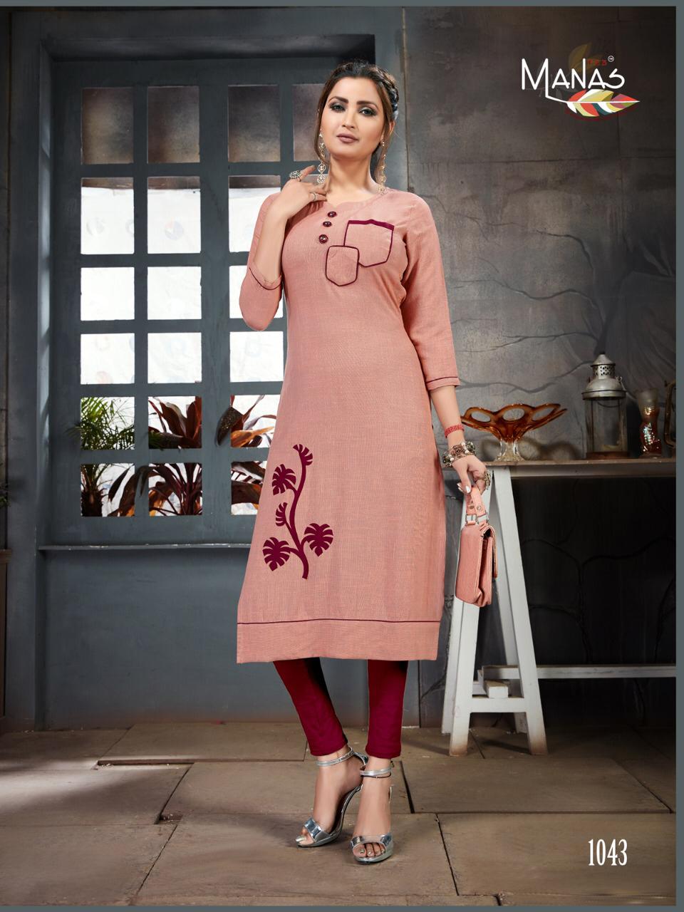 Manas Priyal Vol 6 Namo Cotton Peach Work Daily Wear Kurti Collection