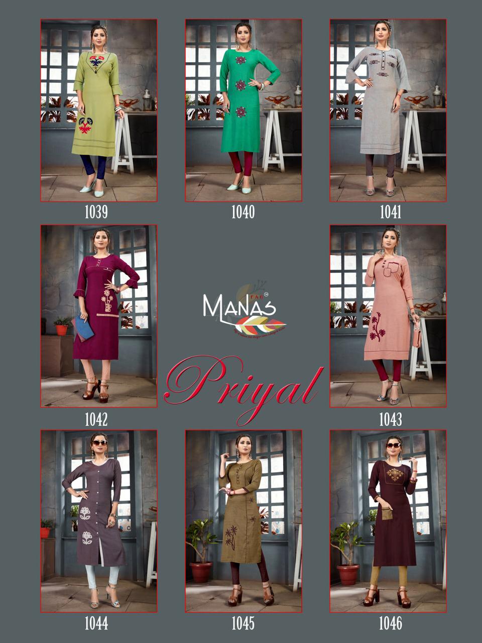 Brand Name : manas catalog Name: Priyal vol. 6 Design : 8 Fabric : namo cotton slab Work : aplic peach work Size : M(38), L(40), XL(42),XXL (44) Rate :425/-Pis + 5% GST dispatch date: 30 August hurray up book your order now Set To Set . |