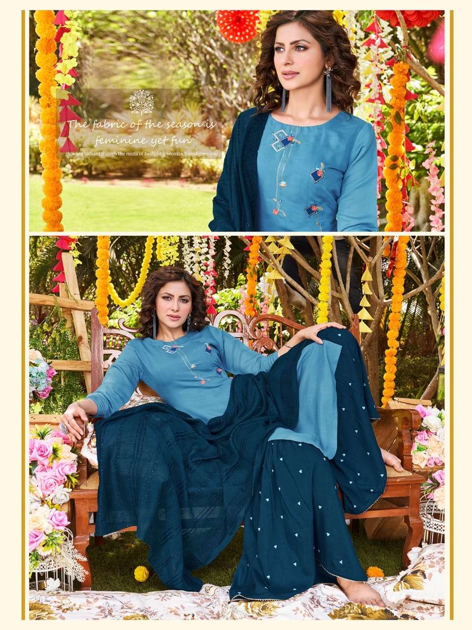 🔥🔥 Brand Name@MANAS FAB🔥🔥 Catalogue name - SITARA 👚Top Fabrics - *VISCOSE FANCY SILK FABRIC WITH INNER * 👖 Bottom fabric- CHINON WITH BUTTI WORK Dupatta: chanderi with CROCHET work (2.25 mt cut) 🧶🧵: Aplic work with Handwork 👚 Top Length ; 46 + 🎗Size - M(38), L(40), XL(42), XXL(44), 3XL(46) ☣Designs - 6 pcs Rate : - 1️⃣0️⃣9️⃣9️⃣➕ 5% GST
