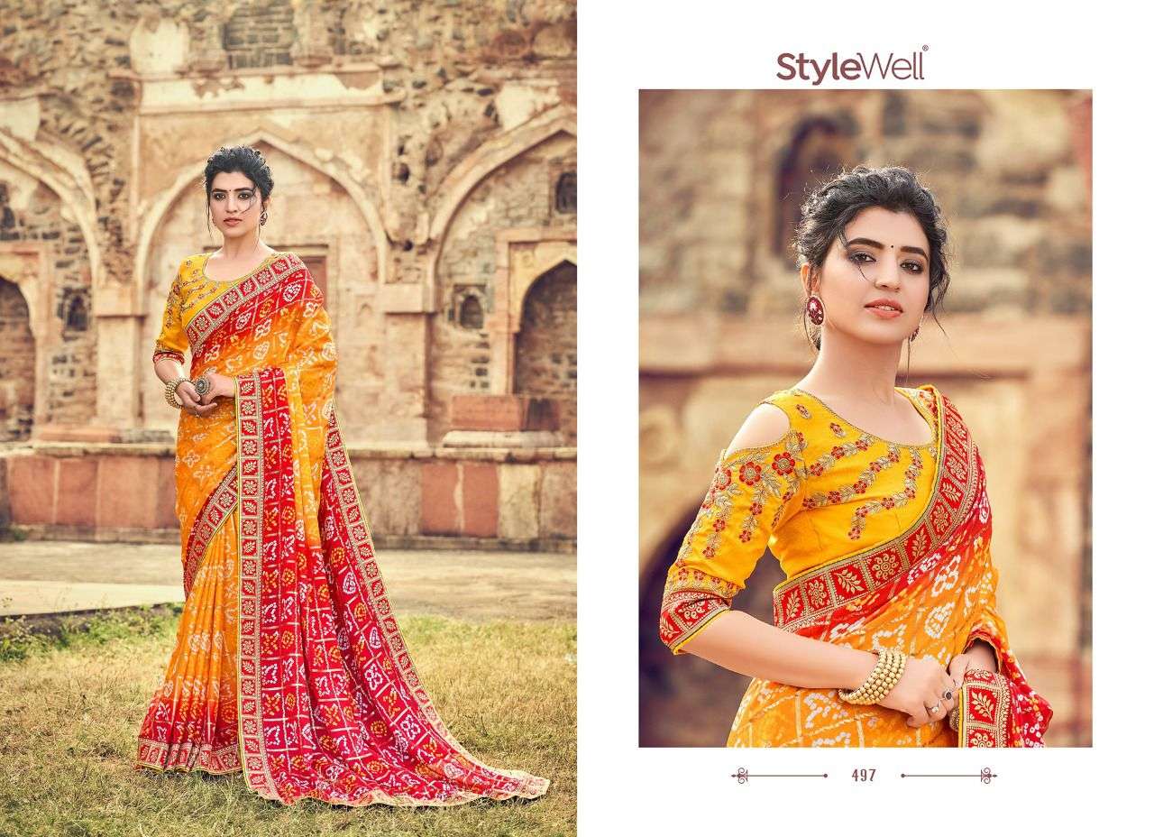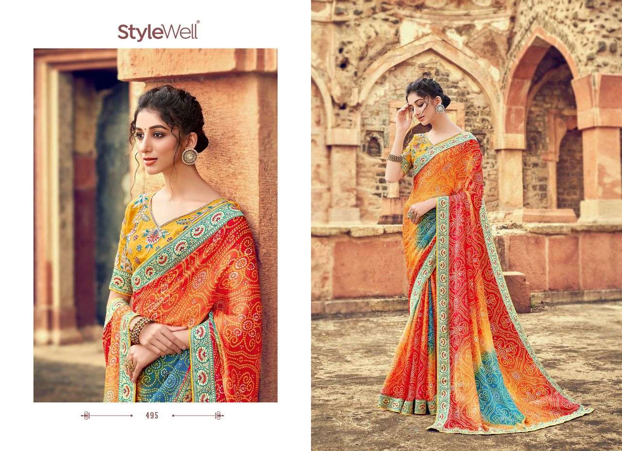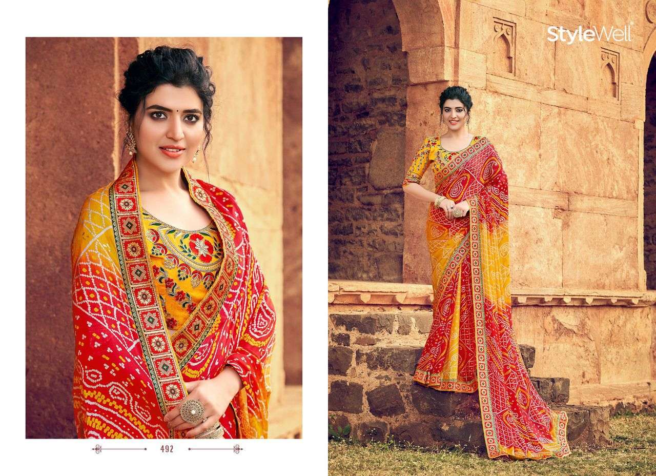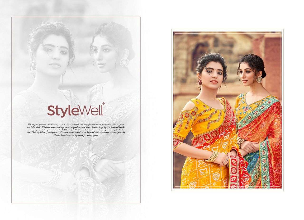 mangalam by stylewell exclusive hand printed bandhej saree with rich embroidery