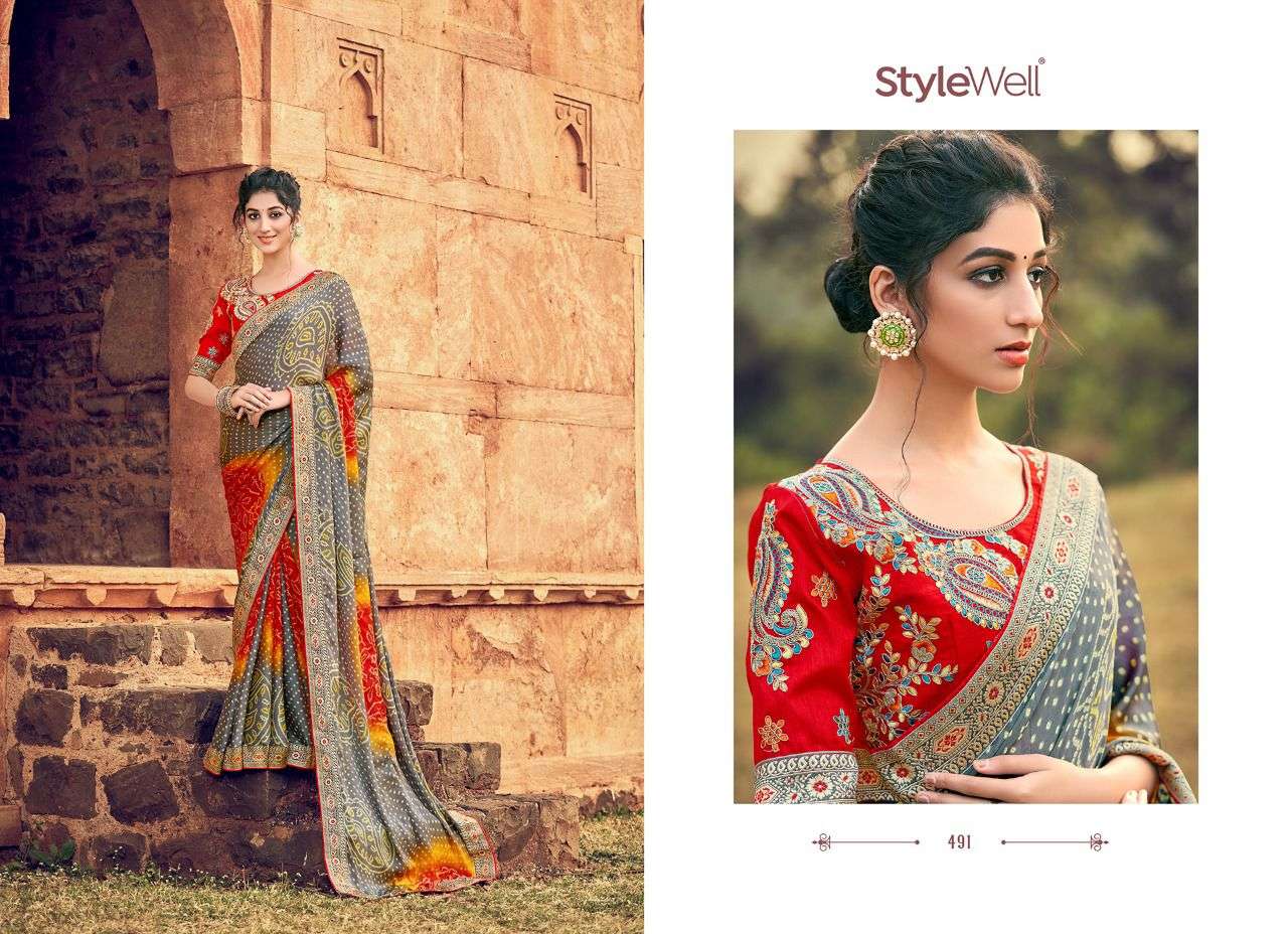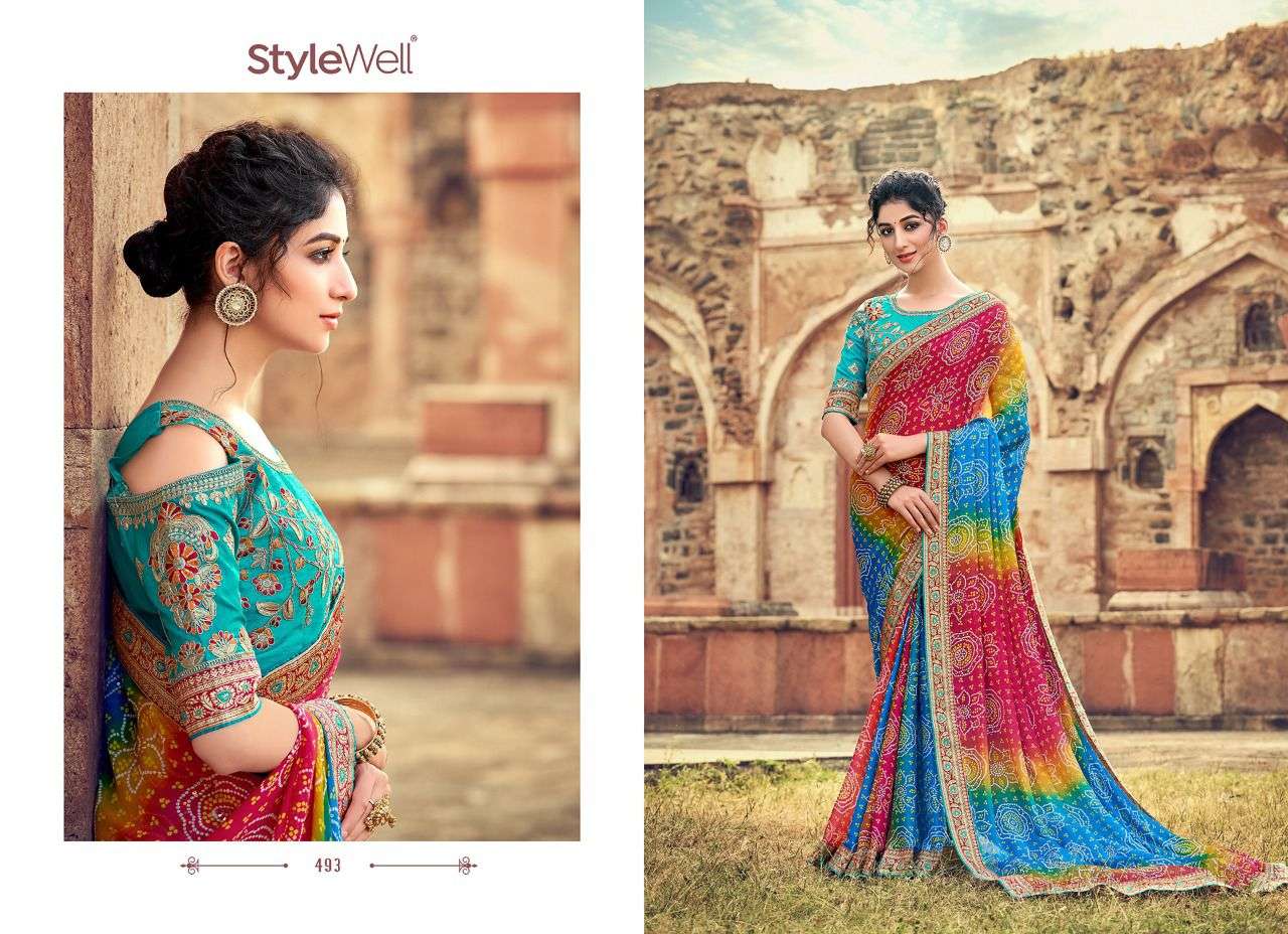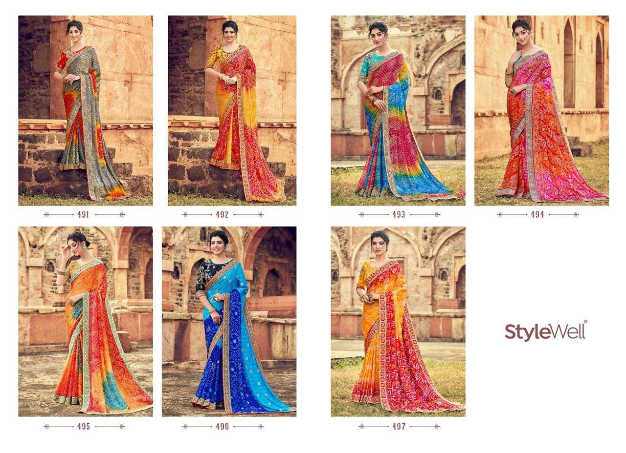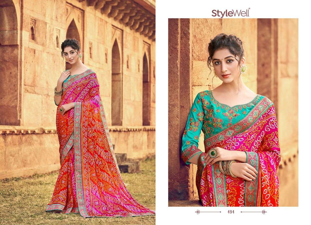 mangalam by stylewell exclusive hand printed bandhej saree with rich embroidery