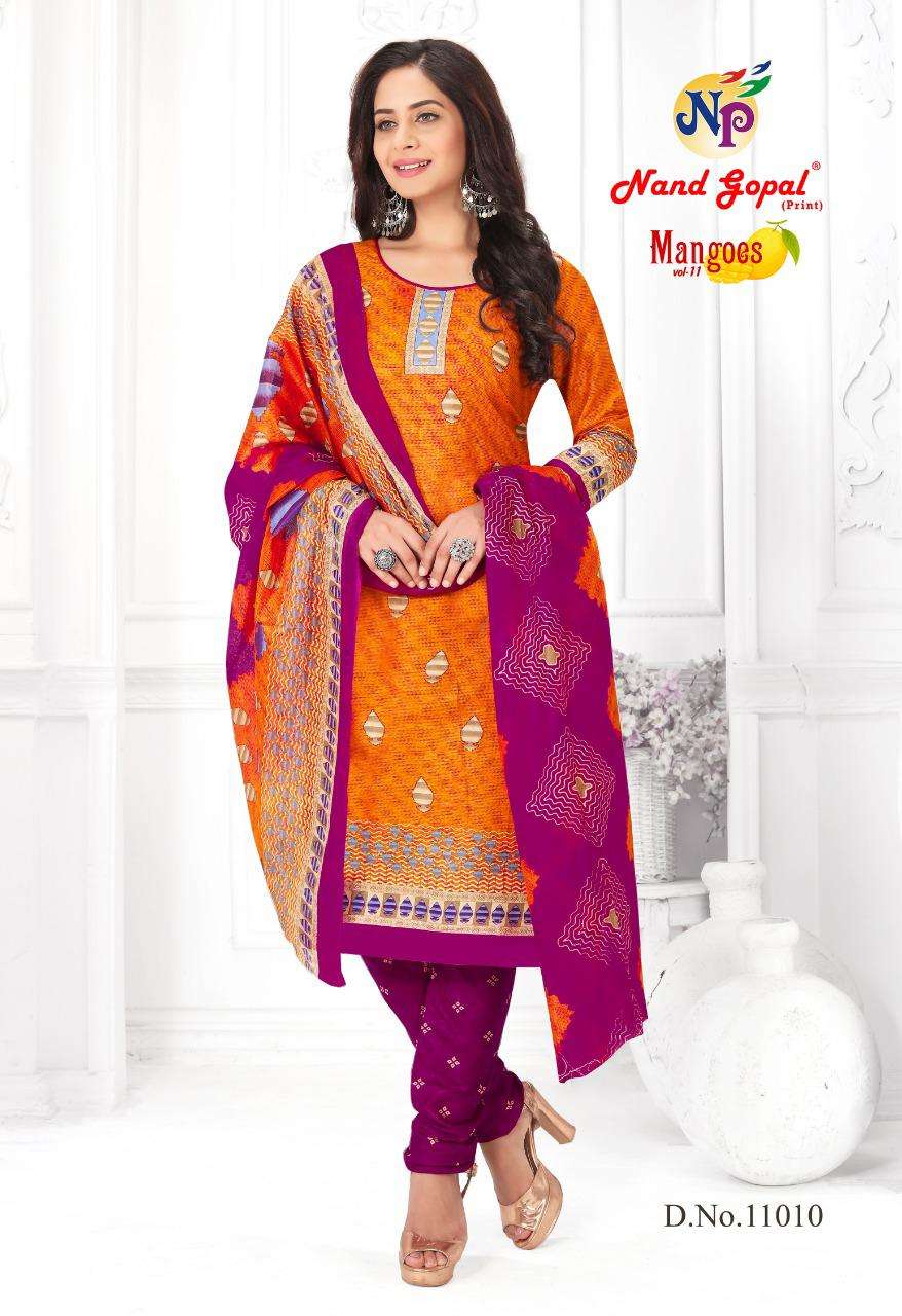 Nand Gopal Print Mangoes V-11 Cotton dupatta Top 2 metre Bottom 2 metre Duppta 2 metre 12 . Rate - 260/- |