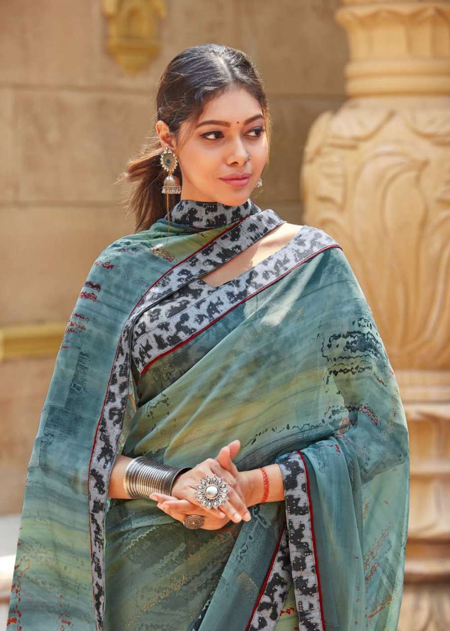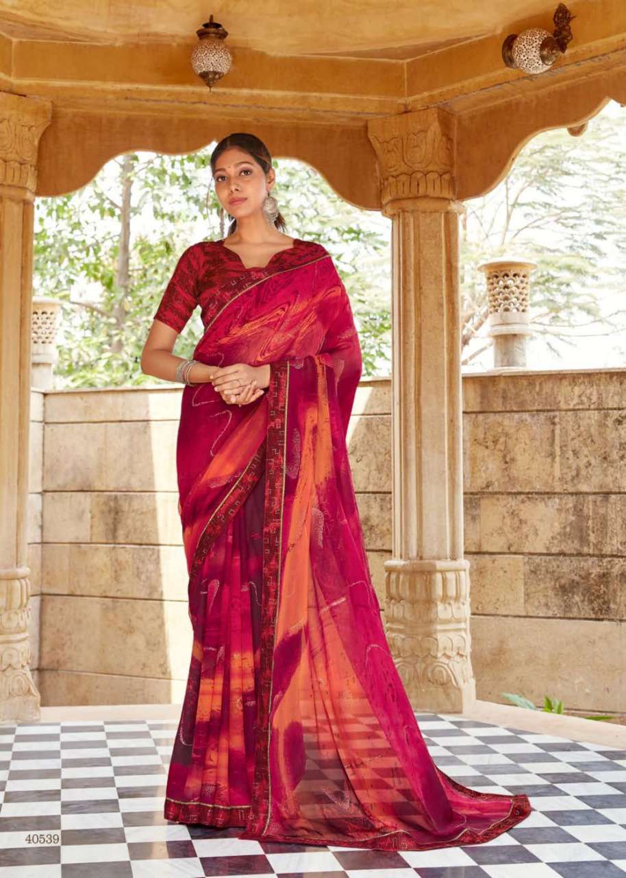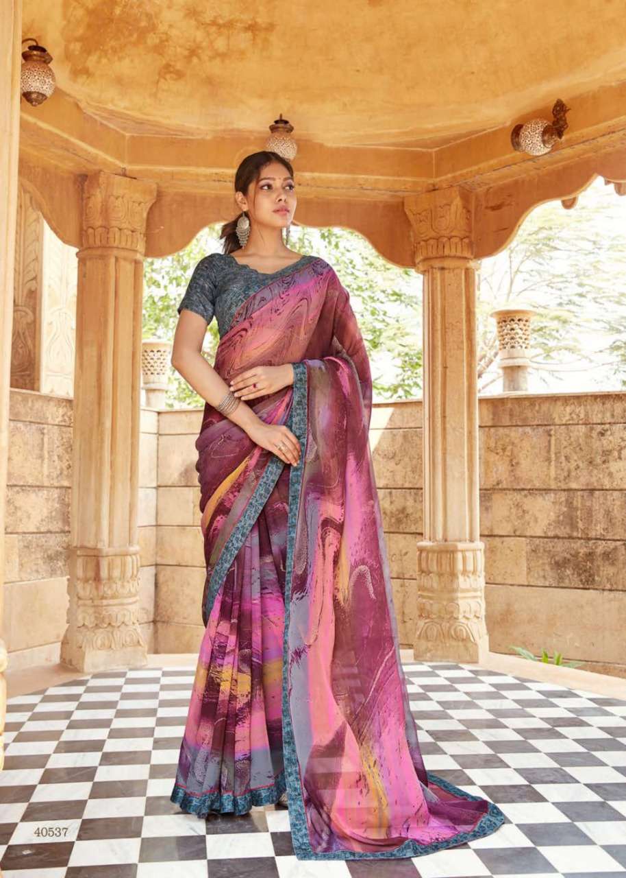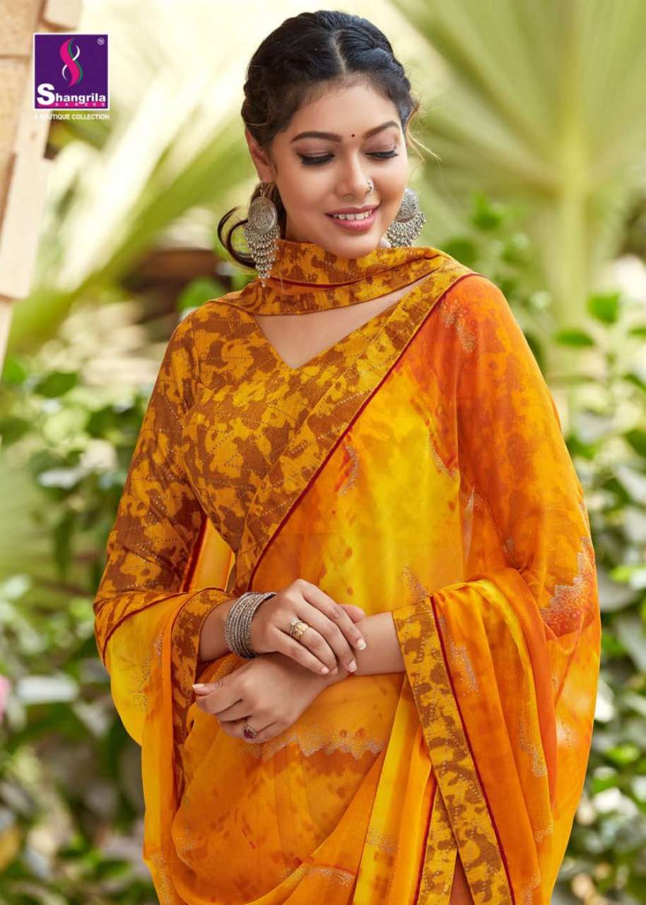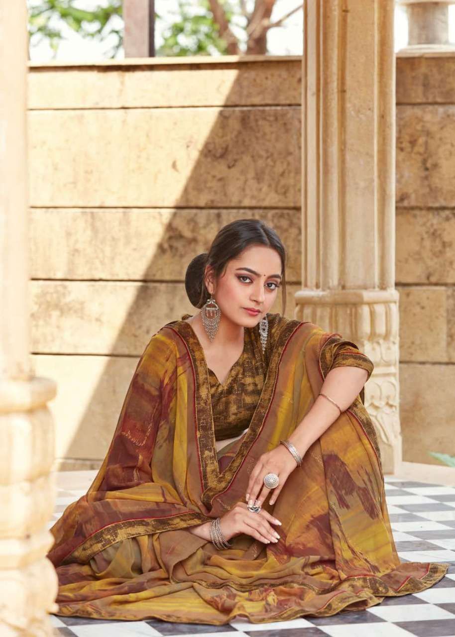 Manjari Fancy Pure Georgette Digital Zari Print Sarees By Shangrila