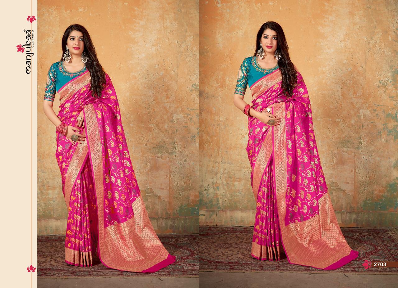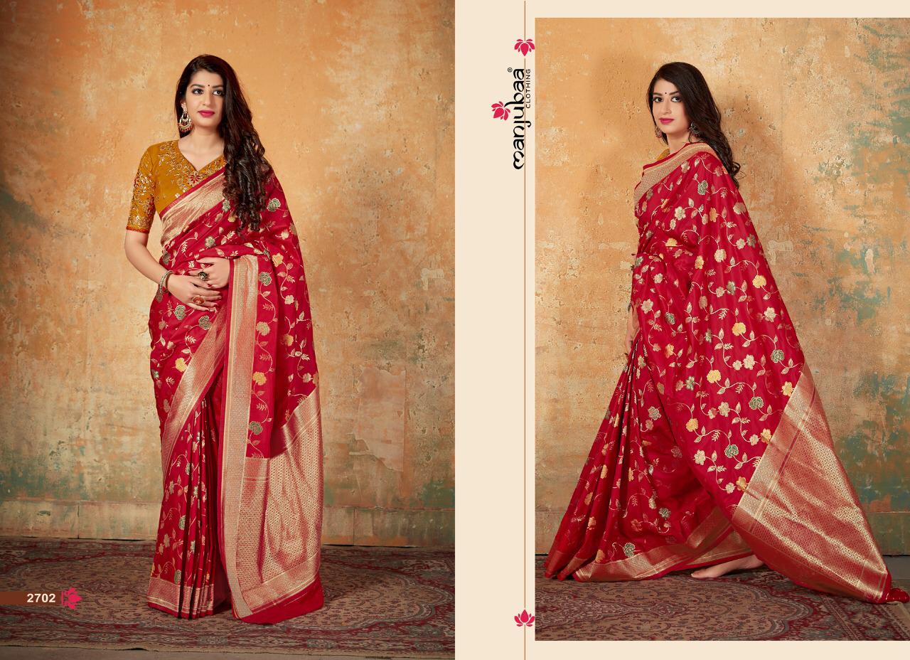 Mahavalli Silk by Manjuba Series - 2701 to 2705. Set to set only PRICE LIST HAS ATTACHED GST 5 Percent Extra. Delivery- Today Dispatching Starts From Today |