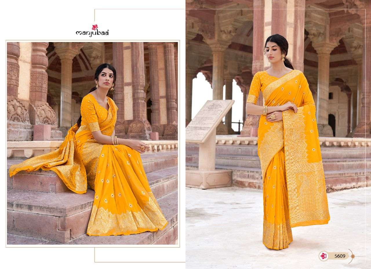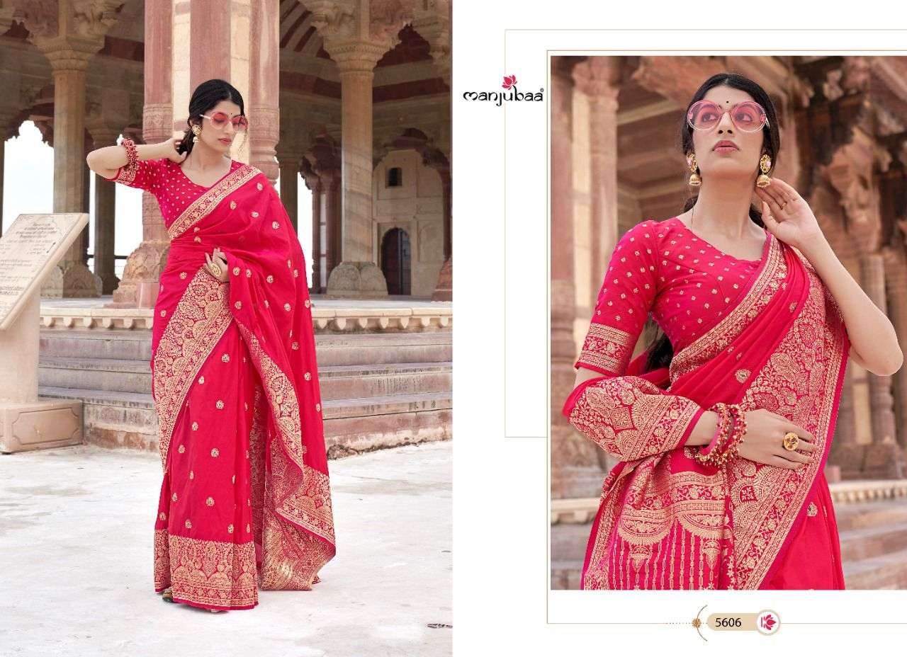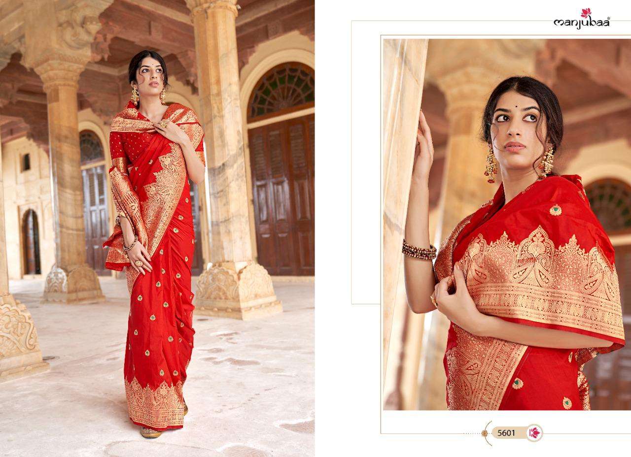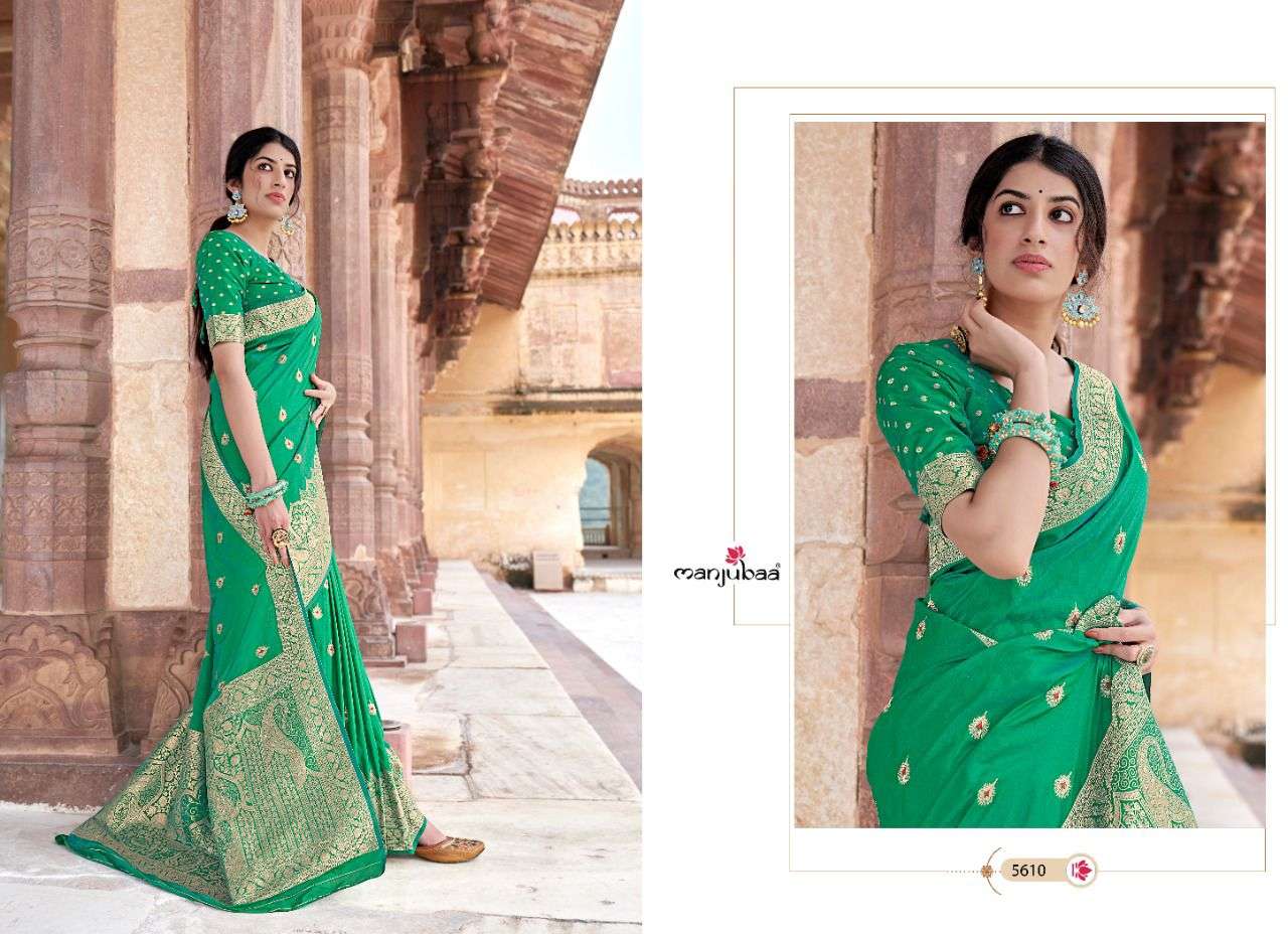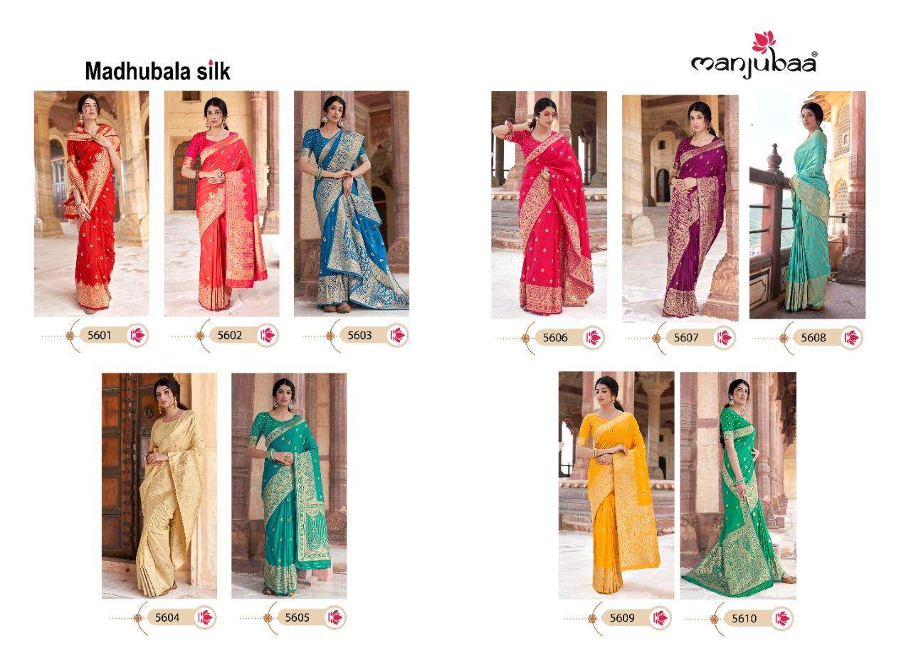 manjubaa launch madhubala silk designer 5601-5610 series party wear saree