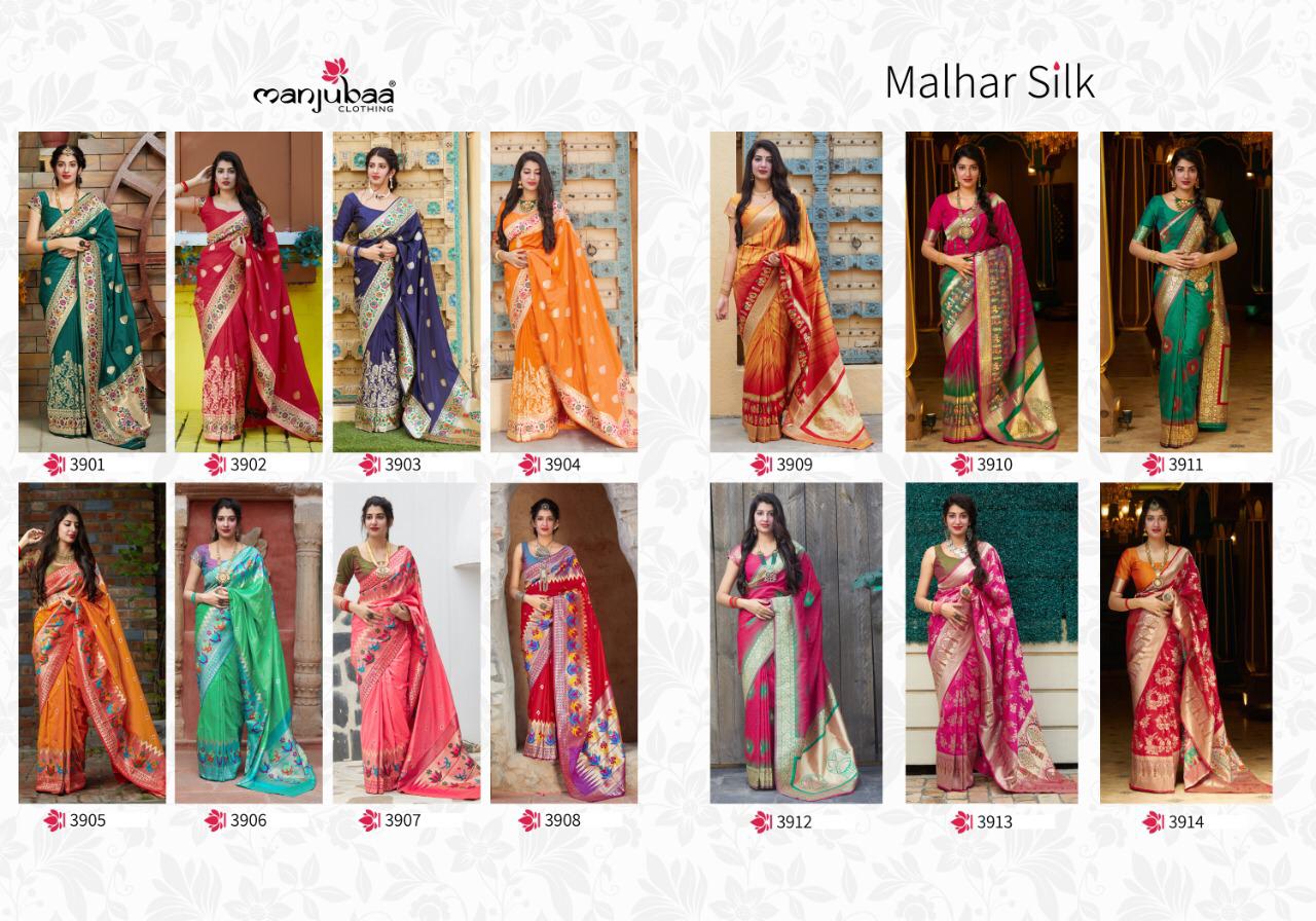 Manjubaa Launch Malhar Silk Traditional Wear Designer Heavy Soft Silk Saree Wholesaler