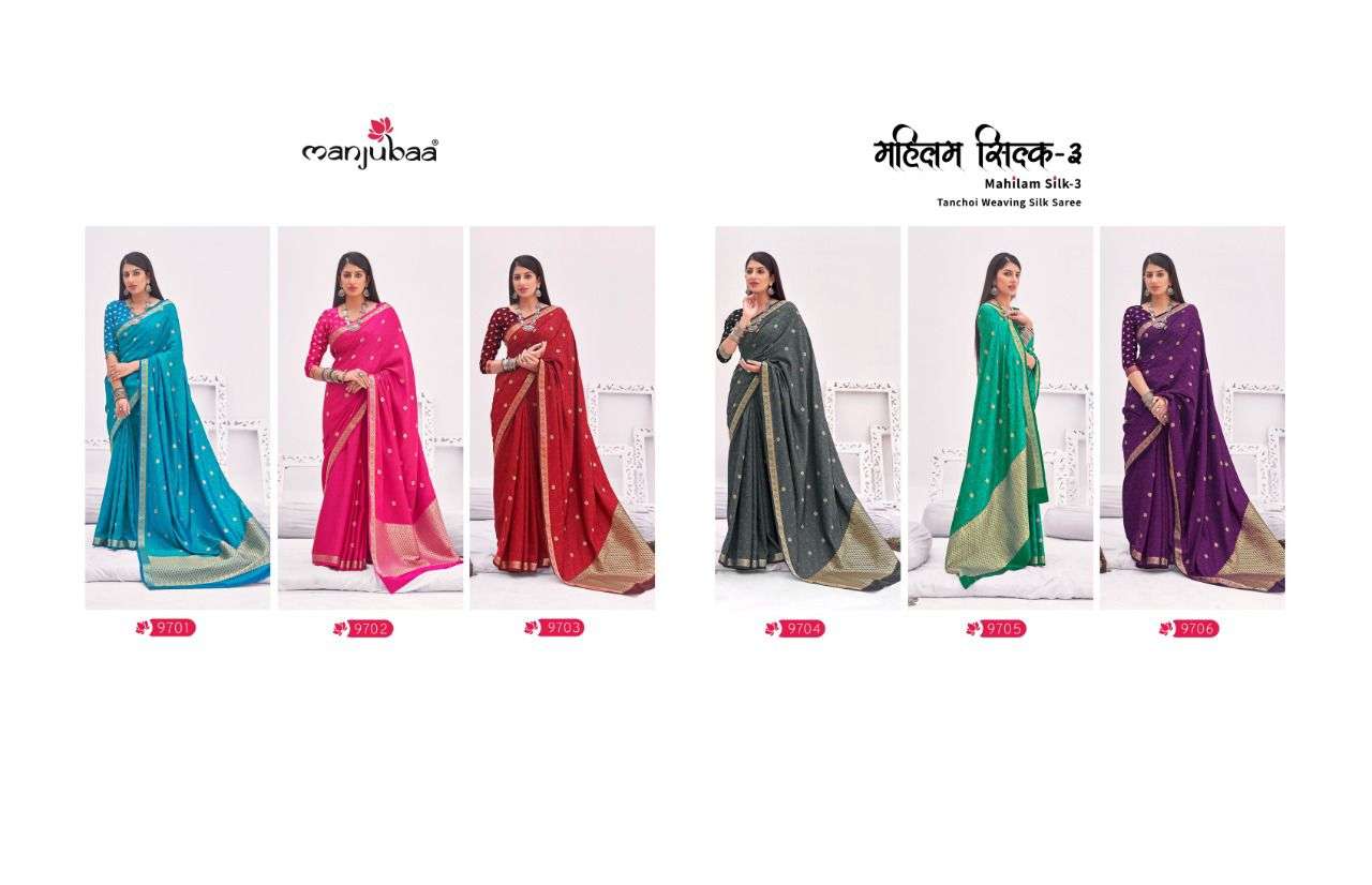 manjubaa mahilam silk vol 3 series 9701-9706 banarasi satin silk sarees