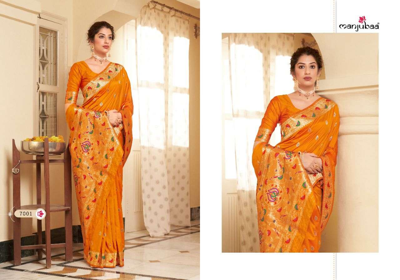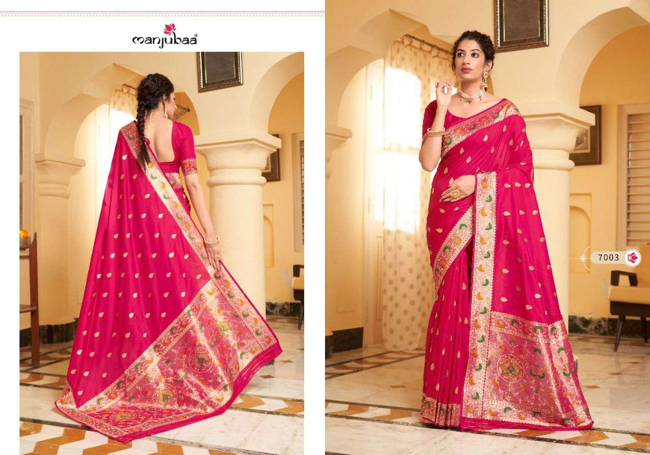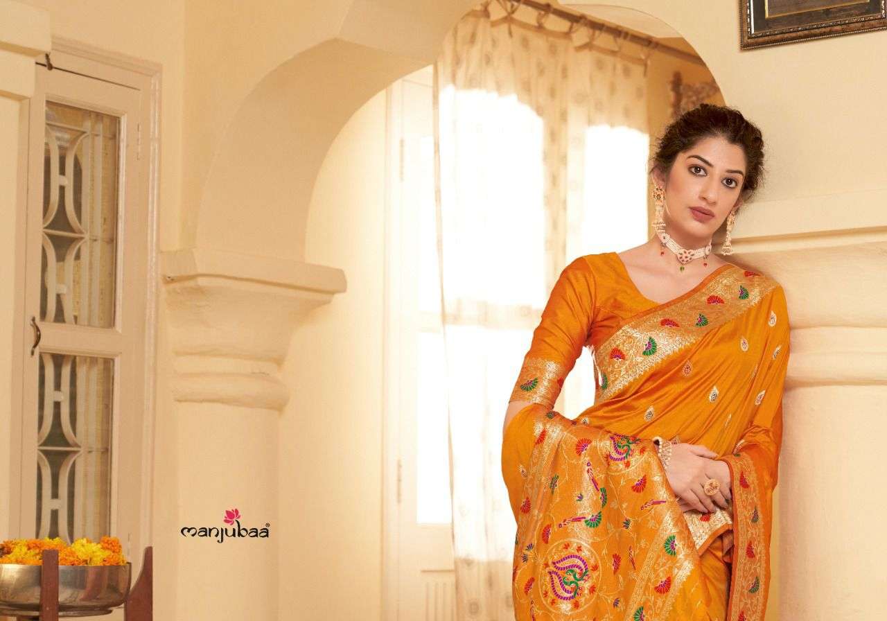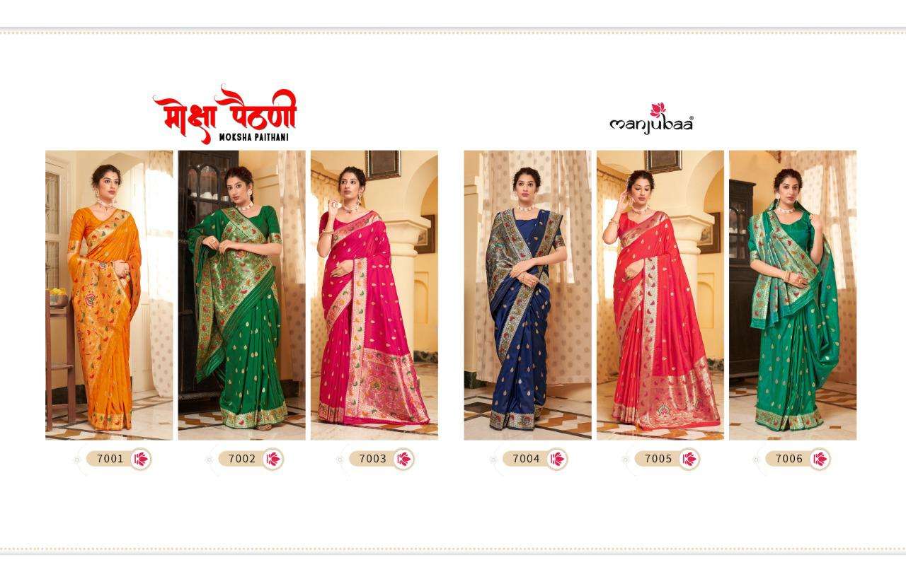 manjubaa moksha paithani 7001-7006 series banarasi soft silk sarees wholesaler