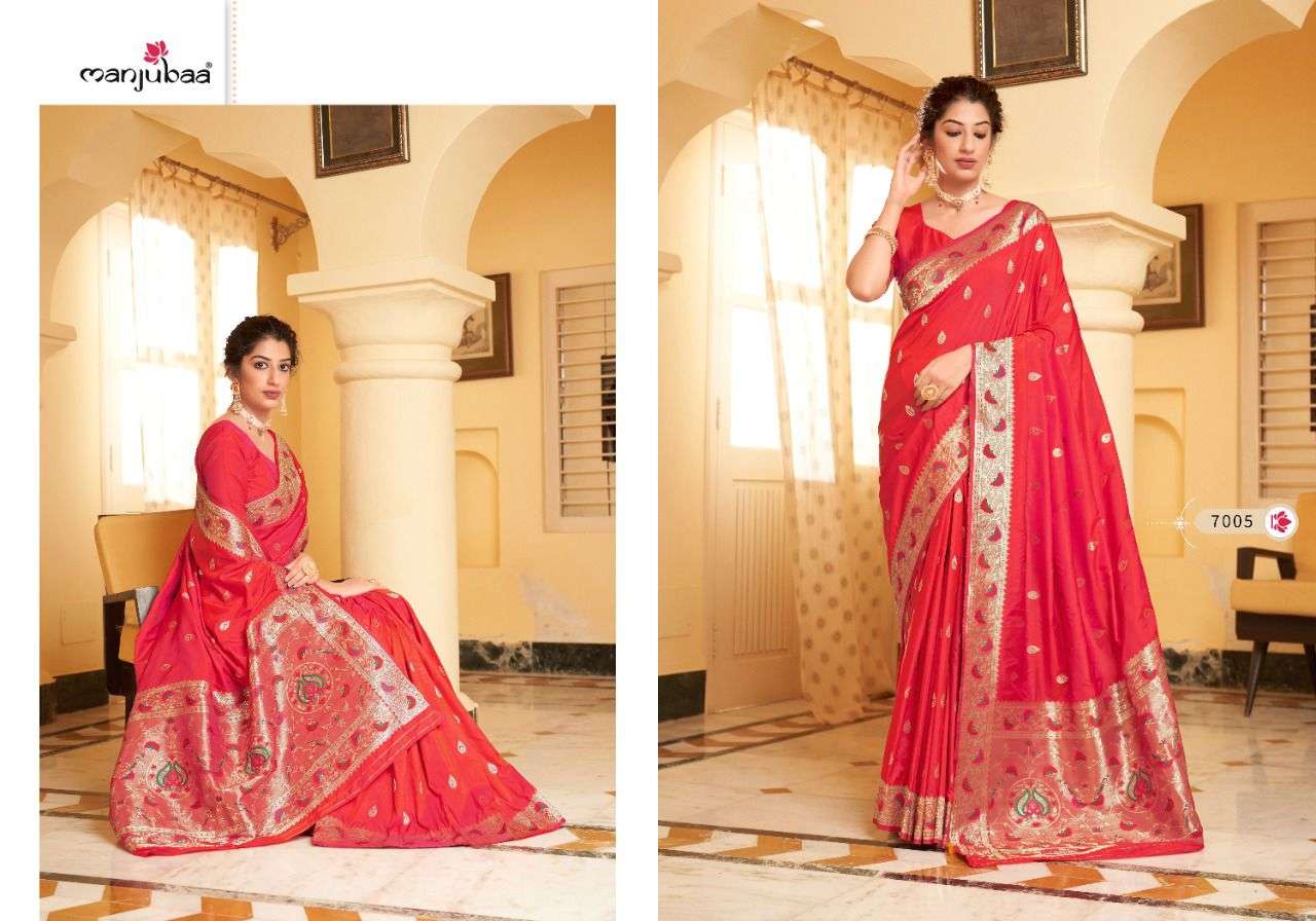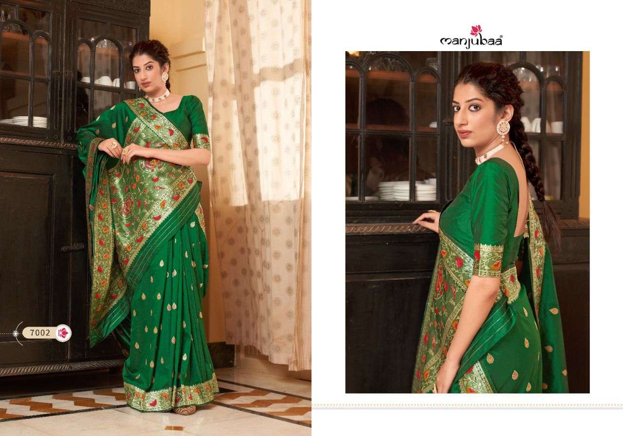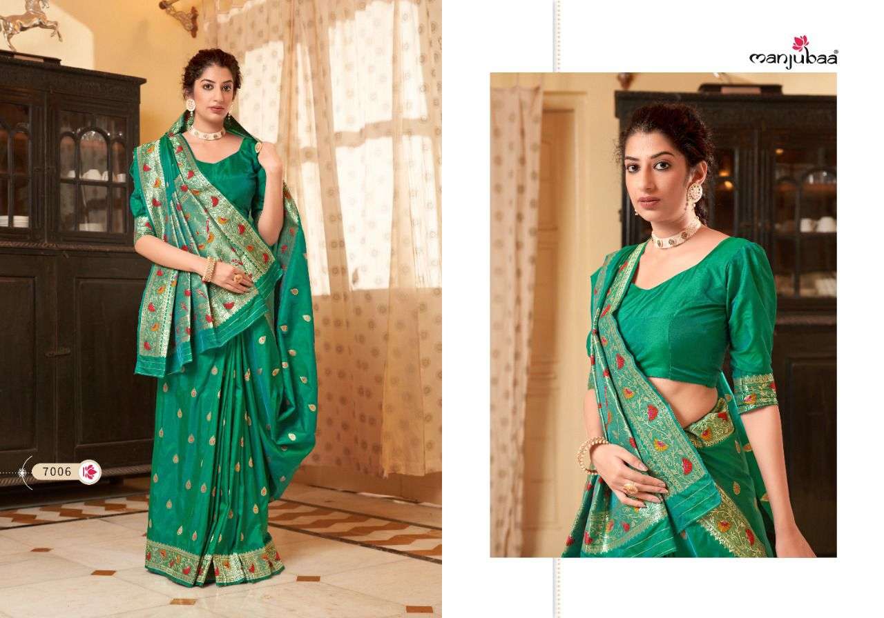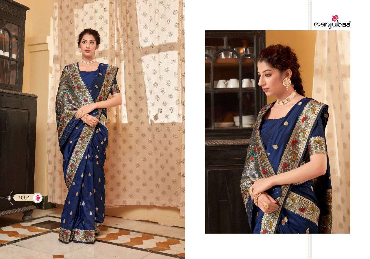 manjubaa moksha paithani 7001-7006 series banarasi soft silk sarees wholesaler