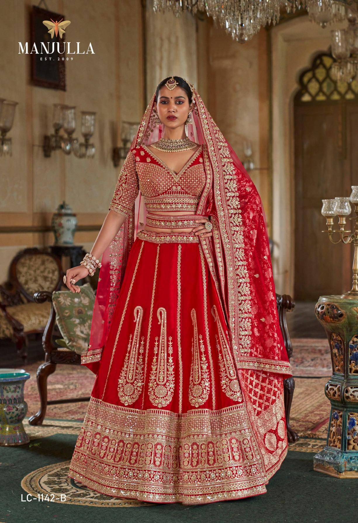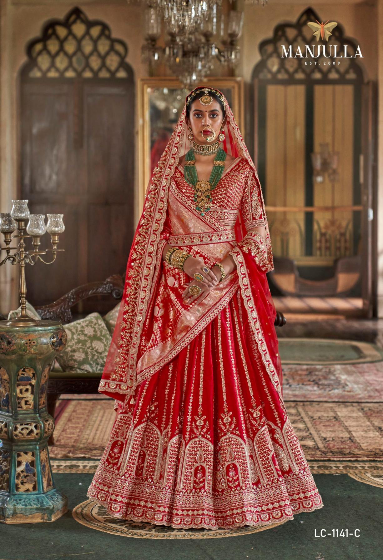 manjulla fashion dulhan vol 1 bridal tone silk stitch lehenga unstitch choli online