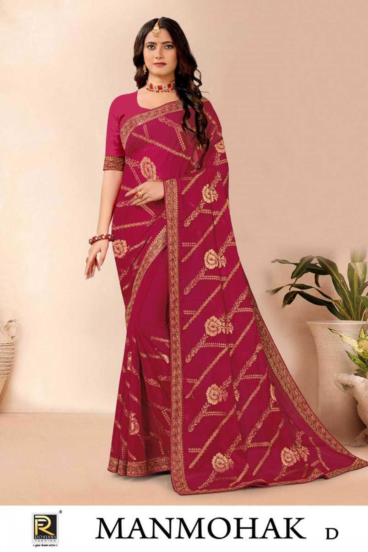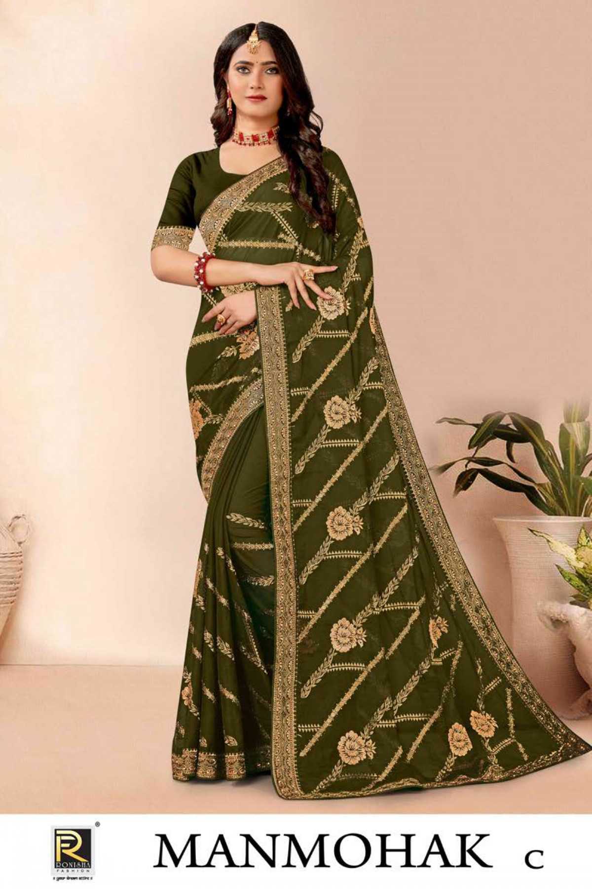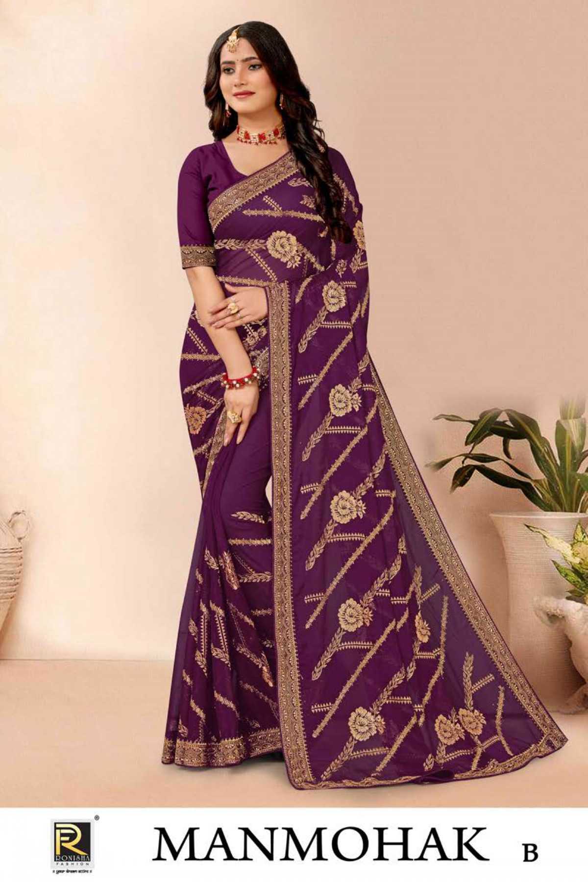MANMOHAK BY RANJNA SAREE FANCY FABRICS SIROSKI WORK FANCY EMBROIDERY BORDER SUPER HIT COLLECTION SAREES