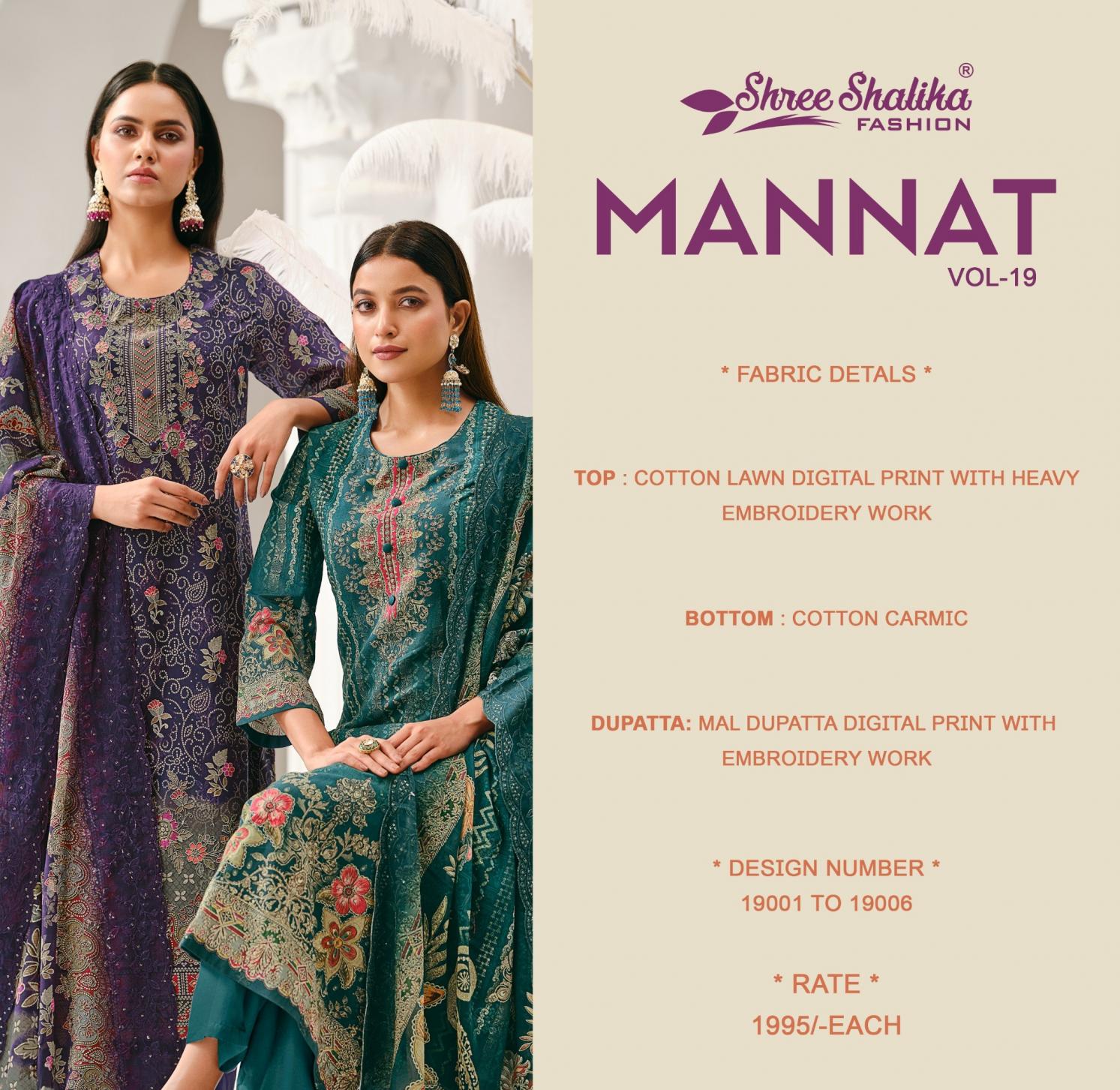 mannat vol 19 by shree shalika lawn cotton shop trendy 3pcs dress
