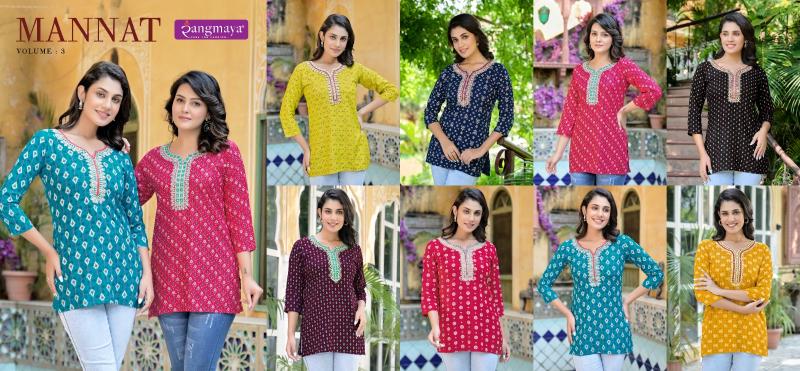 mannat vol 3 by rangmaya casual wear fullstitch rayon girls tops