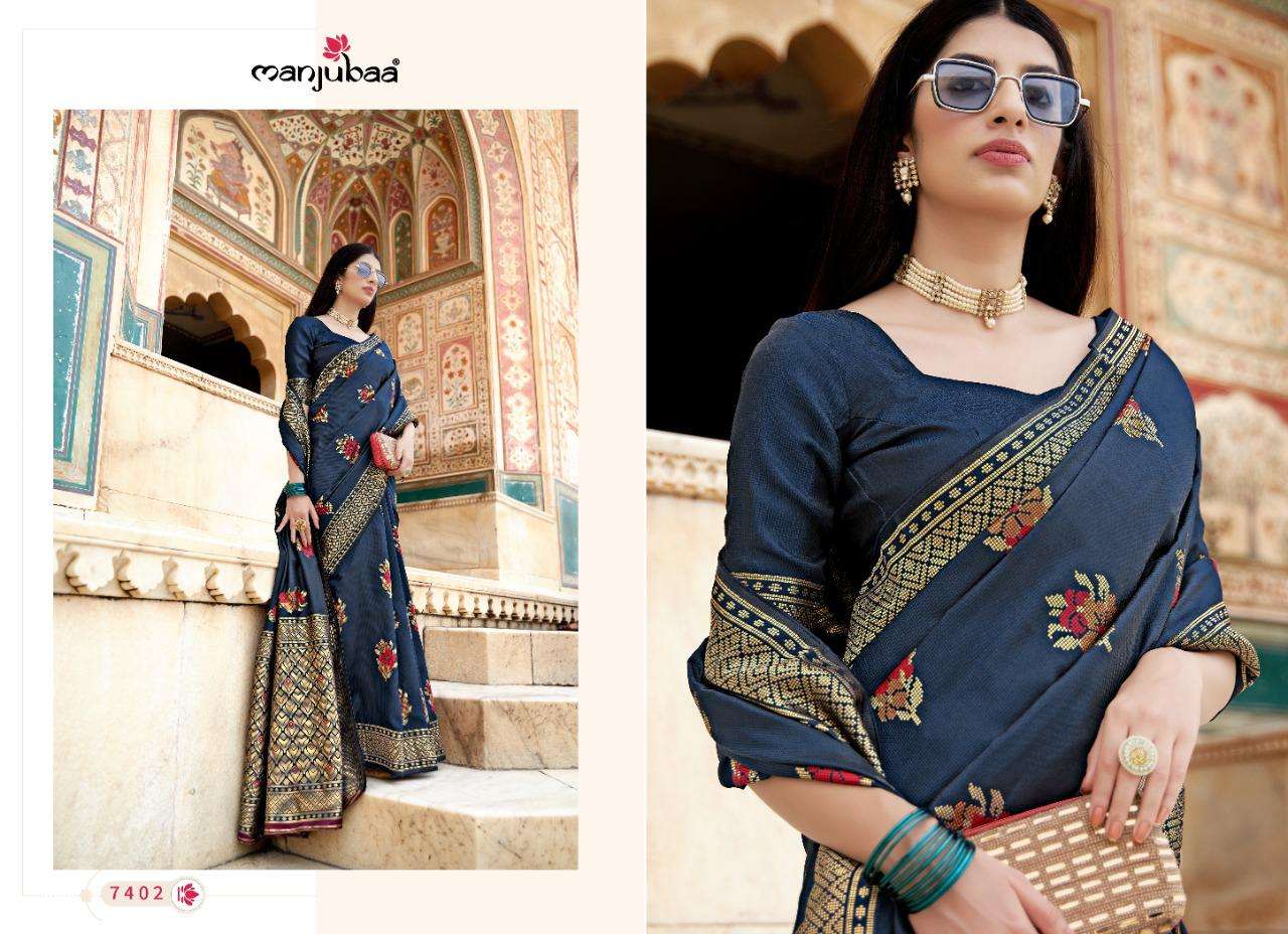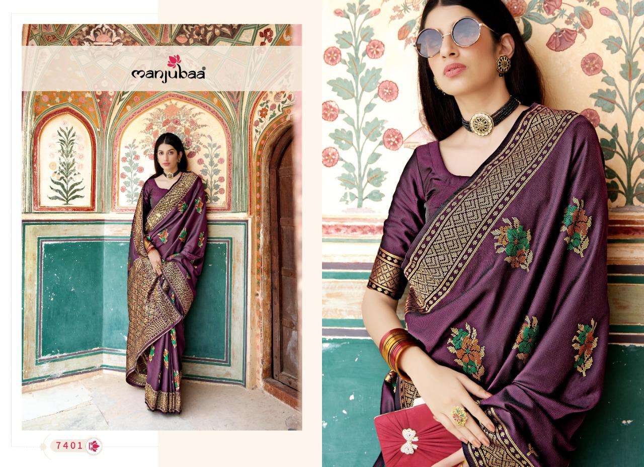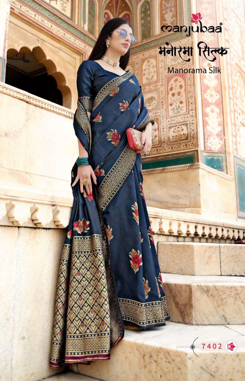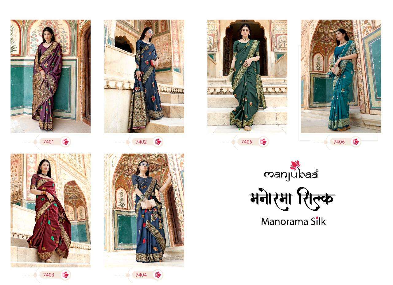manorama silk by manjubaa 7401-7406 series banarasi satin silk sarees