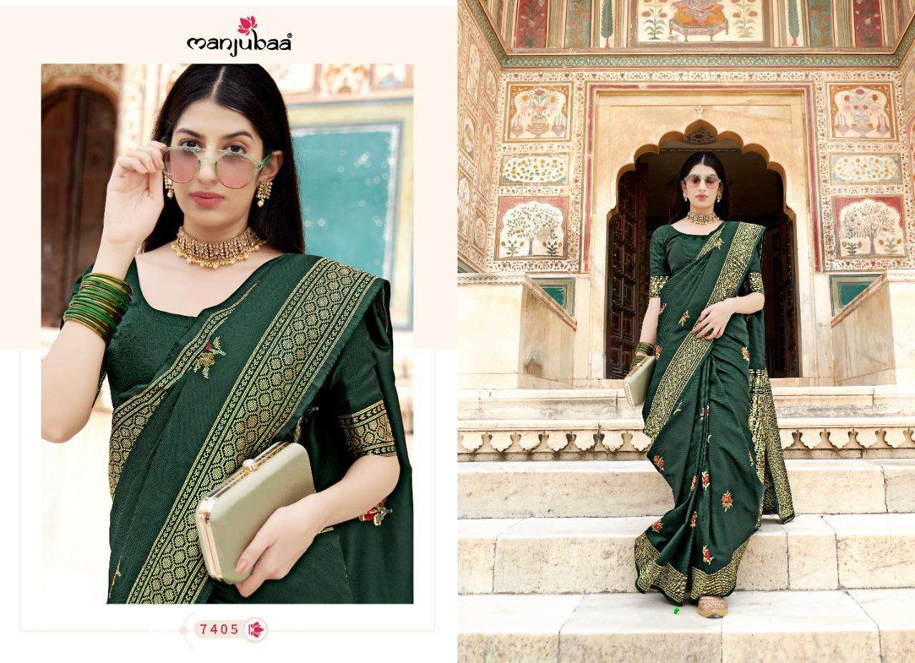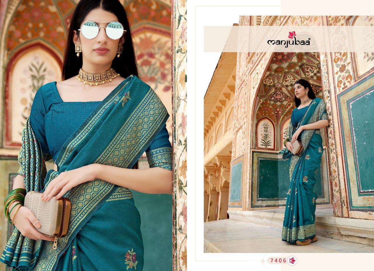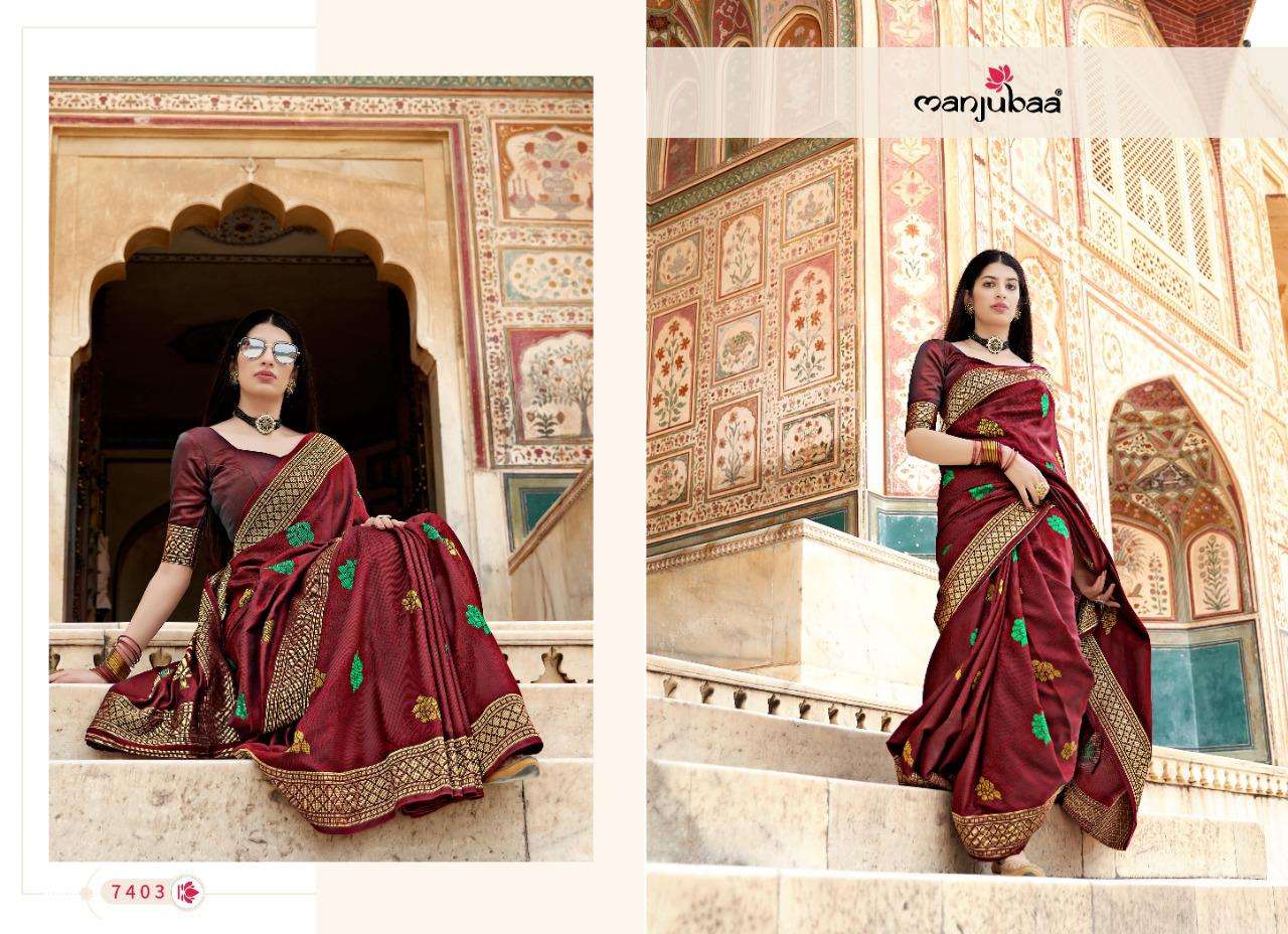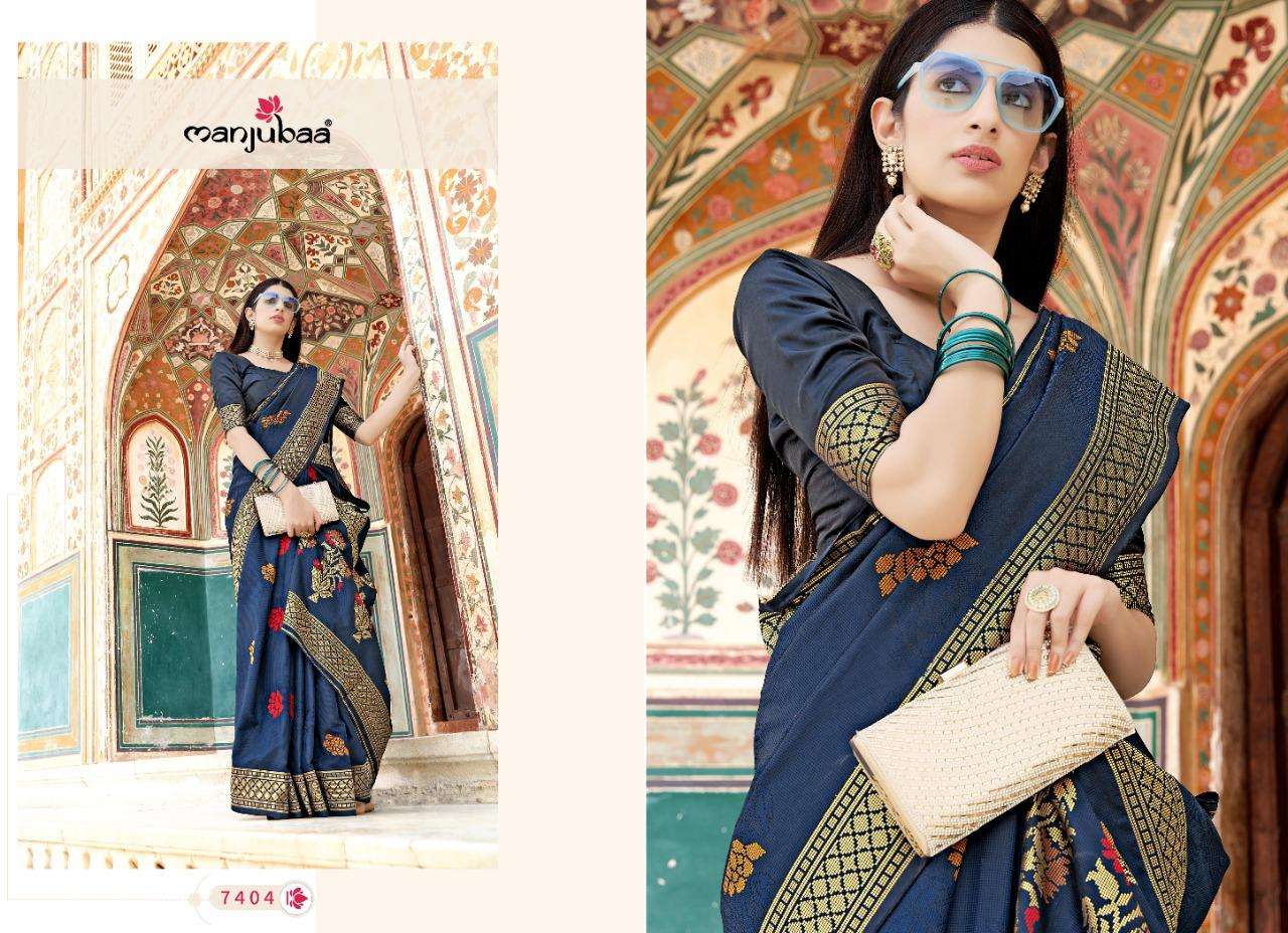 manorama silk by manjubaa 7401-7406 series banarasi satin silk sarees
