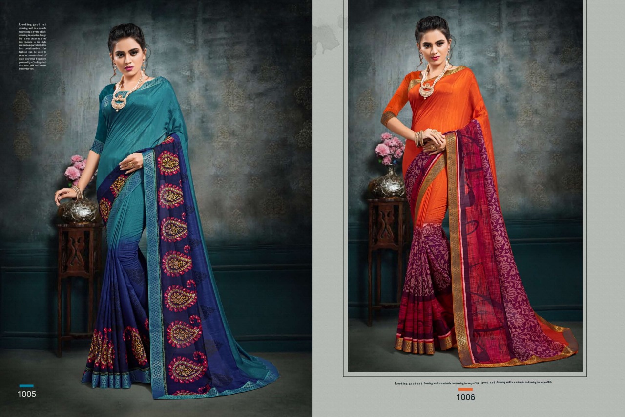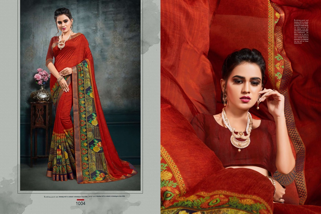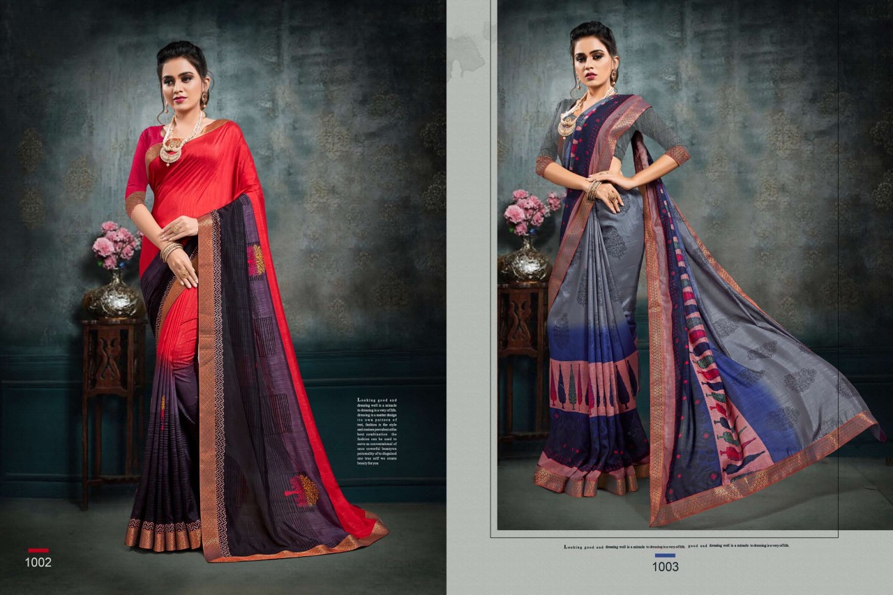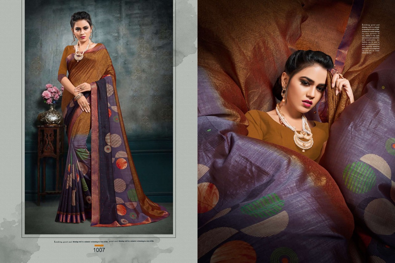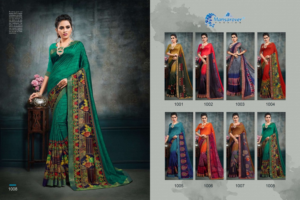 Bhanumati Vol.1 _Brand:- MANSAROVER FASHION Rate:- 525/* GST 5 Percent Extra _Fabric:- :-Catonic vichitra Two Ton with banarsi less with American blouse Total Designs:- 08 _Packing pcs :- set to set Matching :- Eight COLOR Eight design Cut :- 6/30mtr Delivery from today |