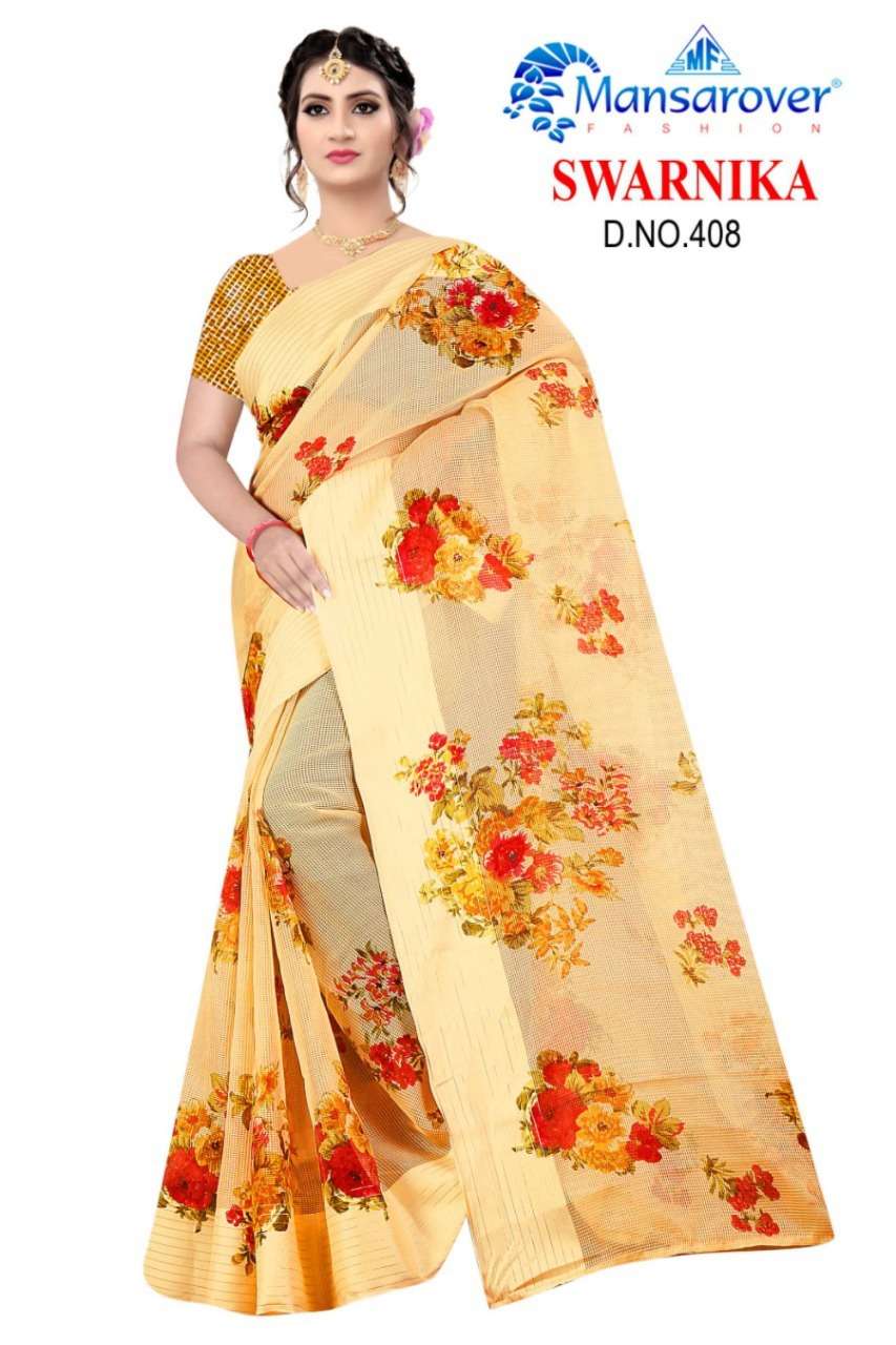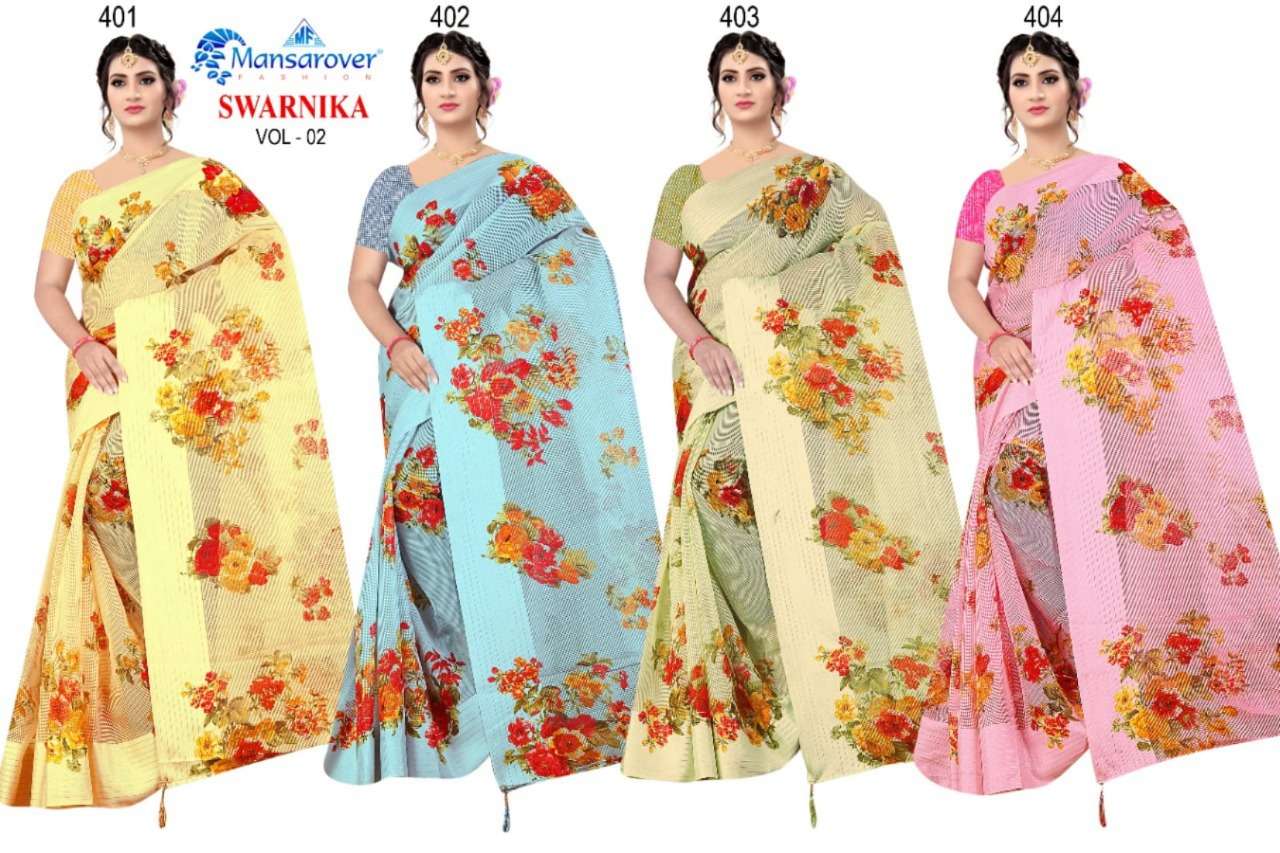 mansarover fashion launch swarnika vol 2 varni chex cotton print with latkan pallu saree supplier