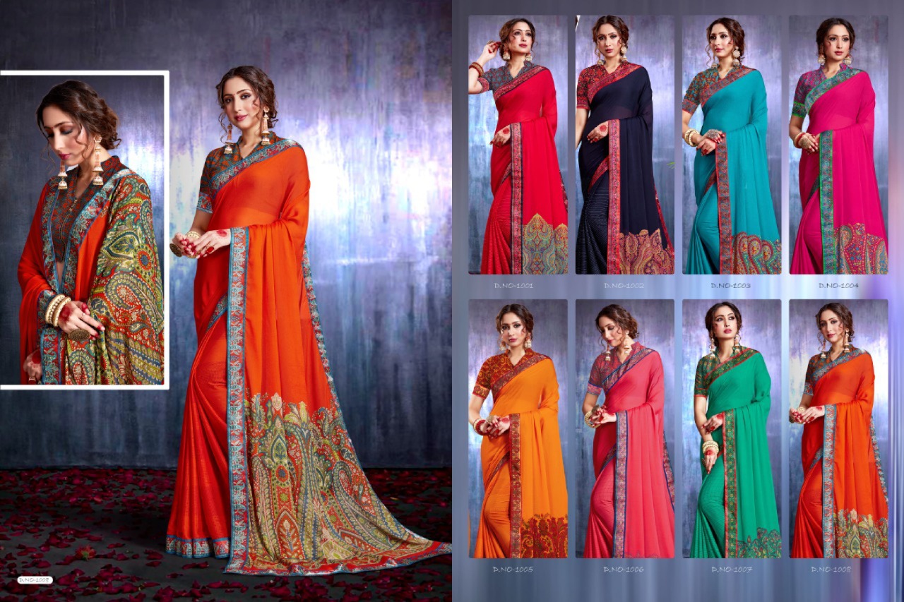 NEW INTRODUCING MUDHRA Brand:- MANSAROVER FASHION Rate:- 525/- _Fabric:- MASAKALI PEDDING DISHARGE PRINT WITH EXCLUSIVE DIGITAL PRINT FANCY BODER Total Designs:- 08 _Packing pcs :- set to set Matching :- SINGLE COLOR WITH BLOUSE GST 5 Percent Extra. Delivery from today |