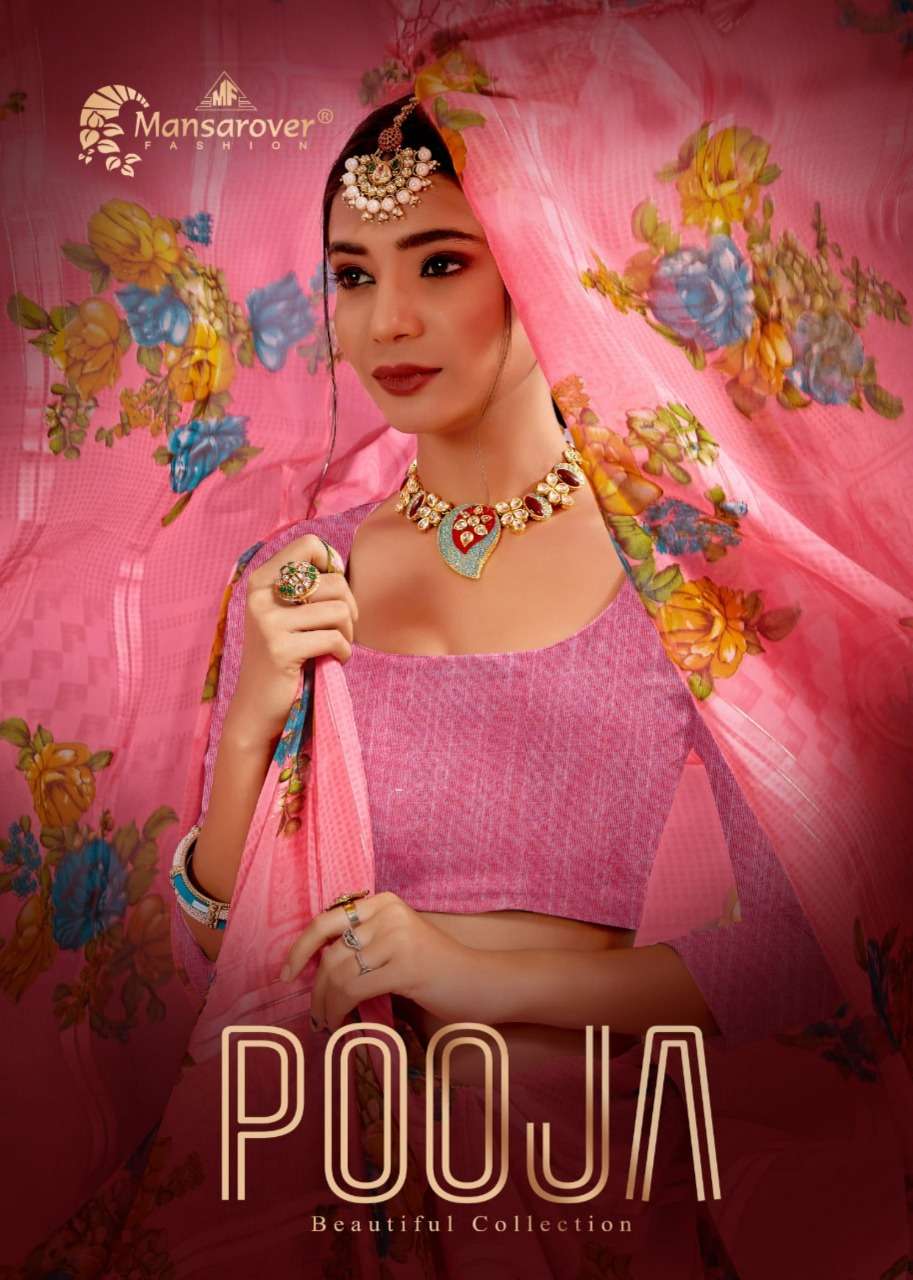 mansarover fashion pooja weightless digital flower printed sarees collection