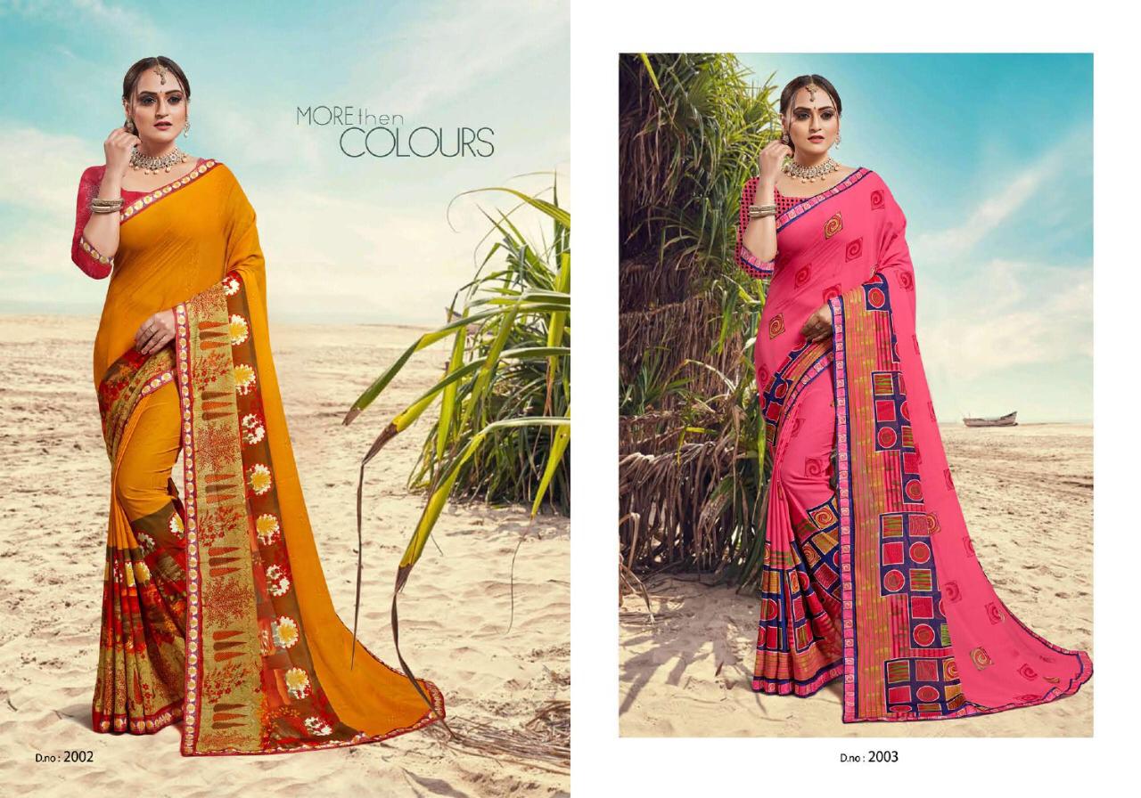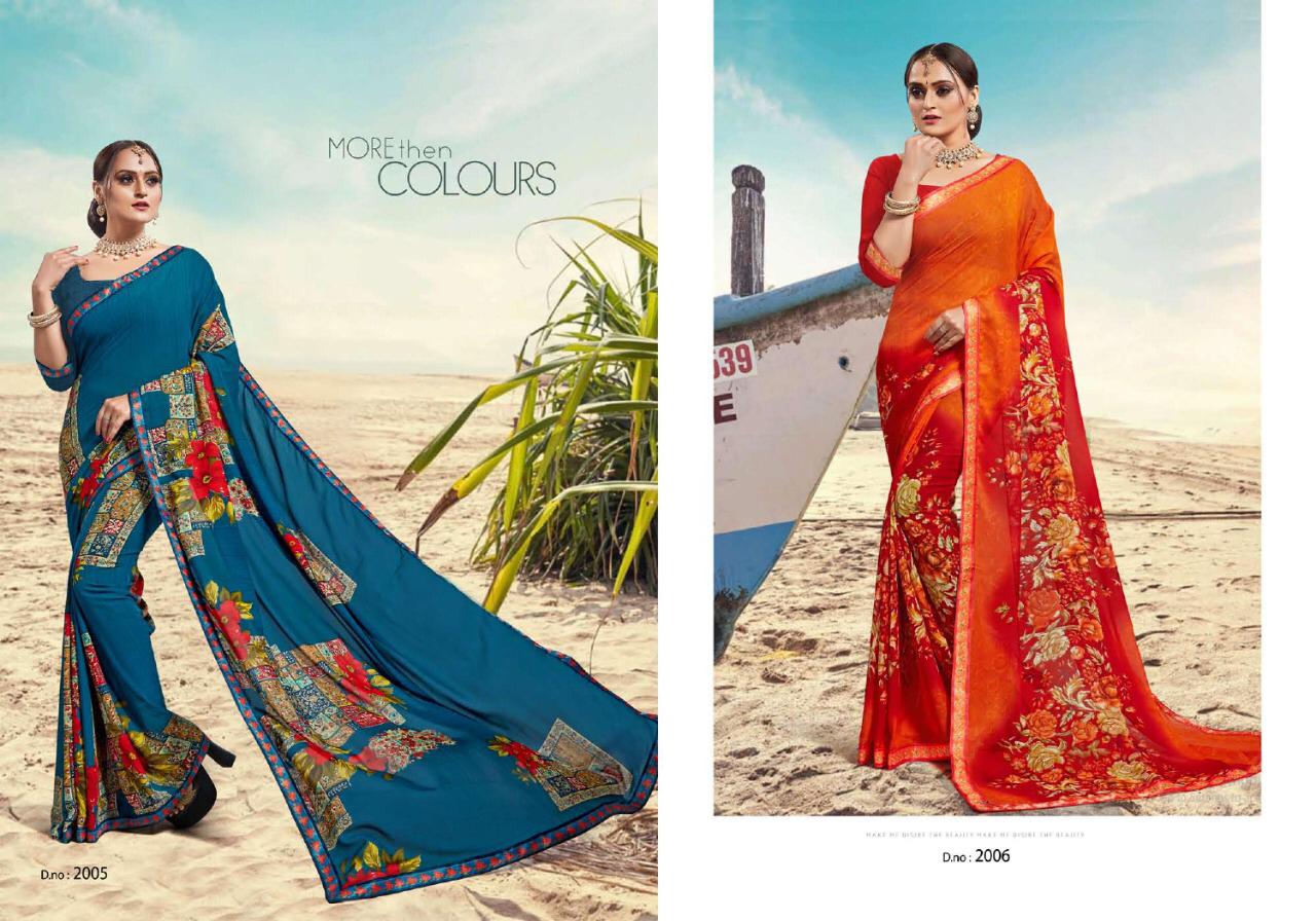Sarine vol 1 Brand:- MANSAROVER FASHION Rate:- 340/- _Fabric:- Powder fill print with digital less WITH Regular blouse Total Designs:- 08 _Packing pcs :- set to set GST 5 Percent Extra Delivery from tomorrow Matching :- Eight COLOR Cut :- 6/00-mtr |