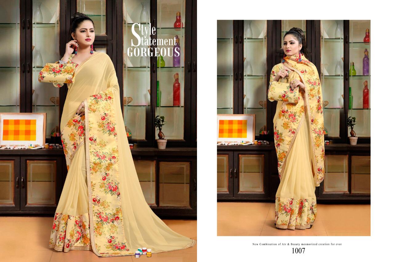 NEW INTRODUCING SUR SANGAM Vol.1 _Brand:- MANSAROVER FASHION Rate:- *725/* _Fabric:-*60 Gramme dyed with digital print With same Digital blouse and with free Gift pack A Ton ton Purse Saree combination! Total Designs:- 08 _Packing pcs :- set To Set Matching :- Single COLOR Cut :- 6/30mtr GST 5 Percent Extra . Delivery from today |