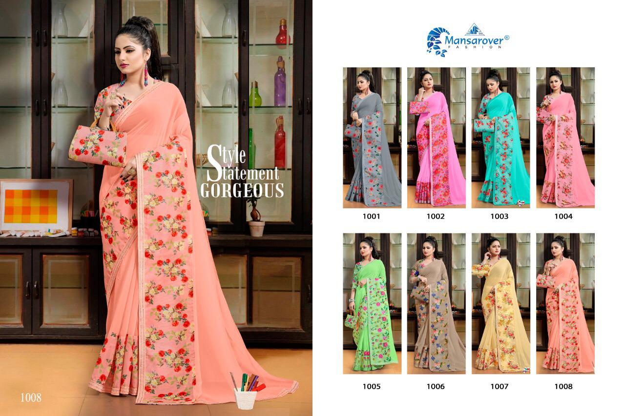 Mansarover Fashion Sursangam Vol 1 Digital Print Free Gift Purse Saree Combination Supplier