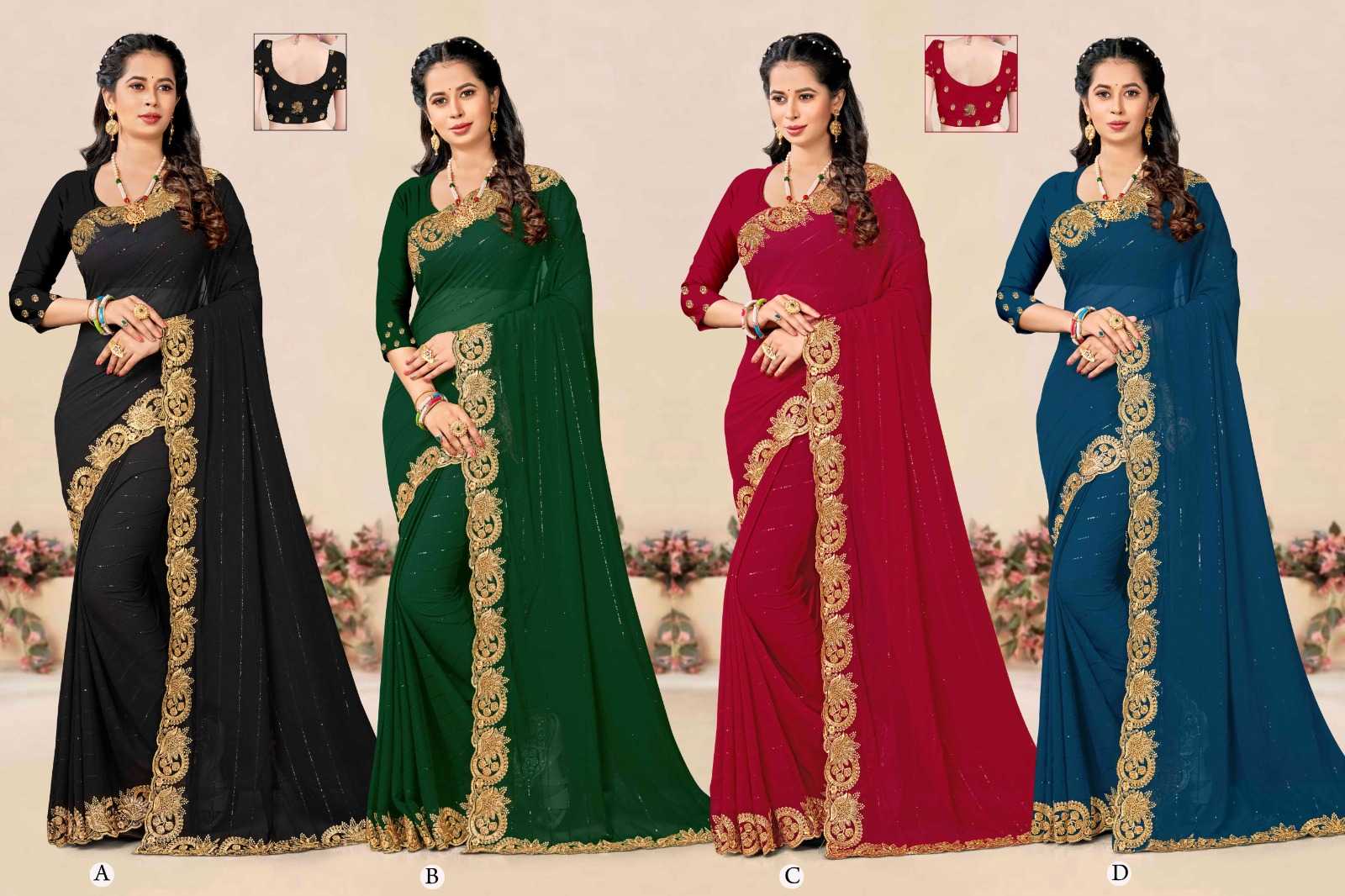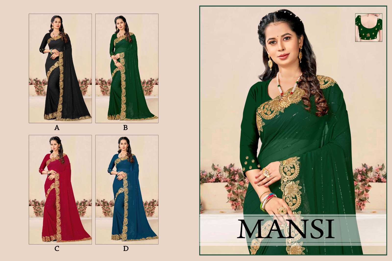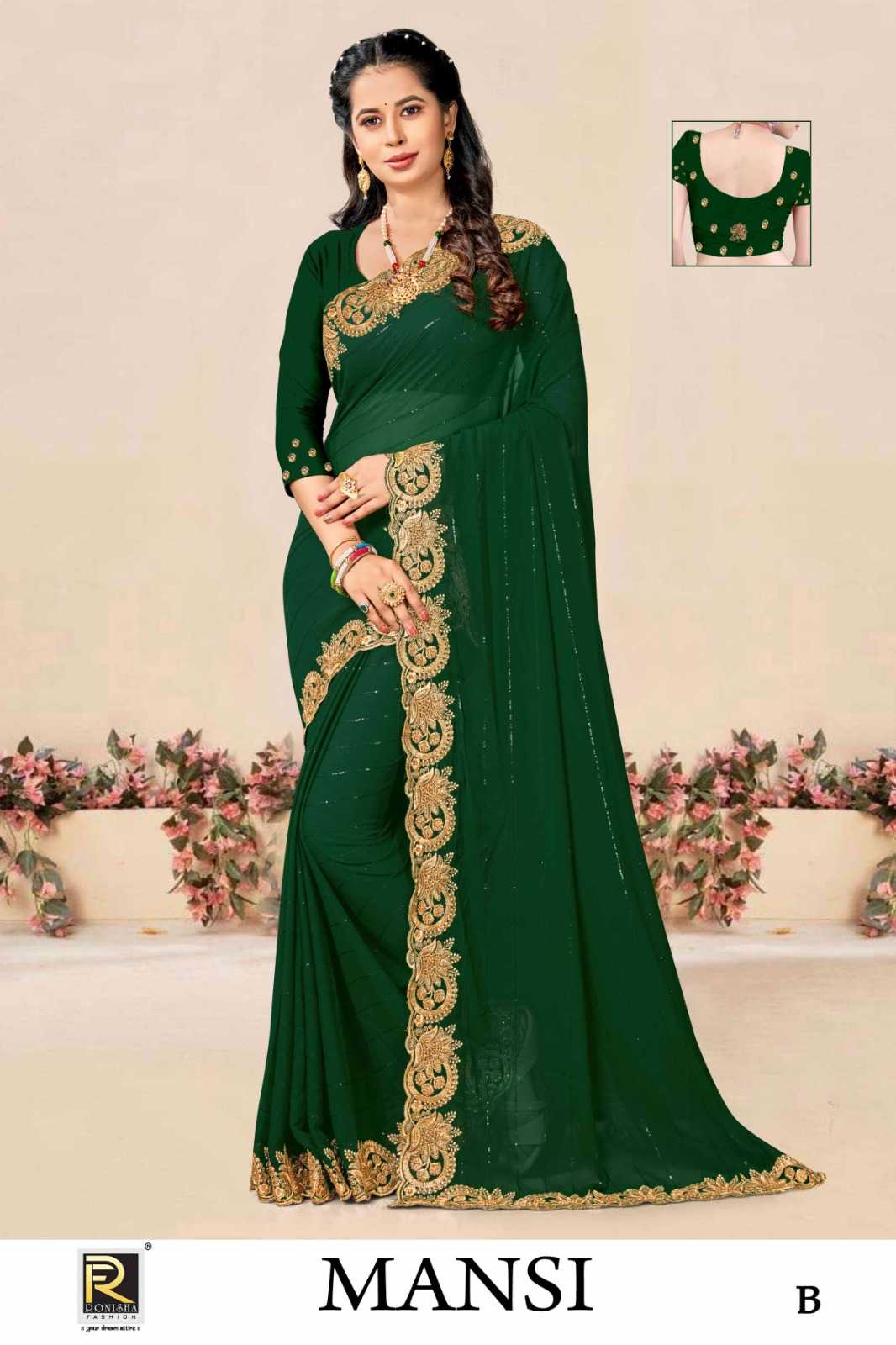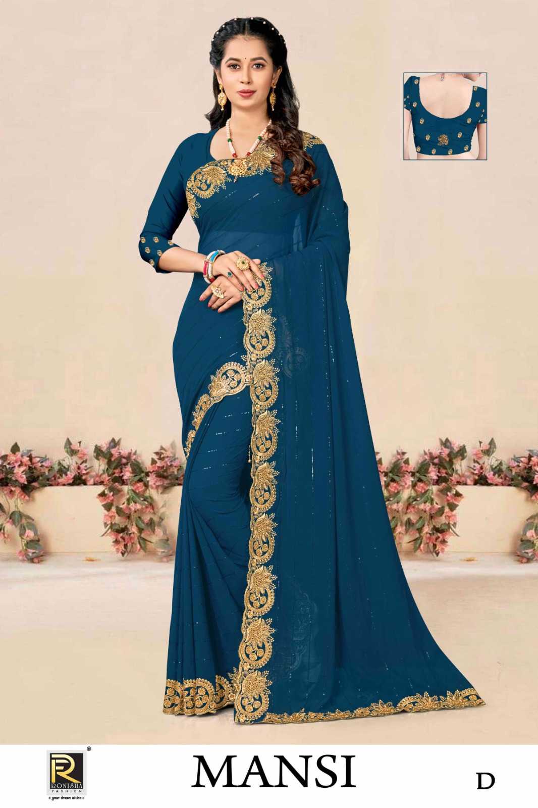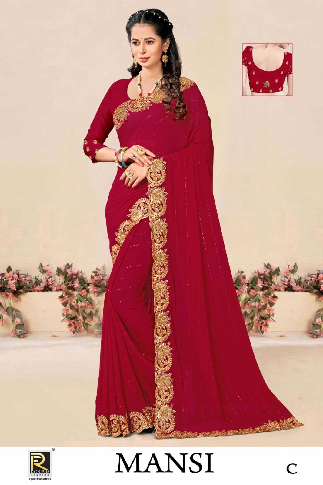 MANSI BY RANJNA SAREE FANCY FABRICS SIROSKI WORK FANCY EMBROIDERY BORDER SUPER HIT COLLECTION SAREES