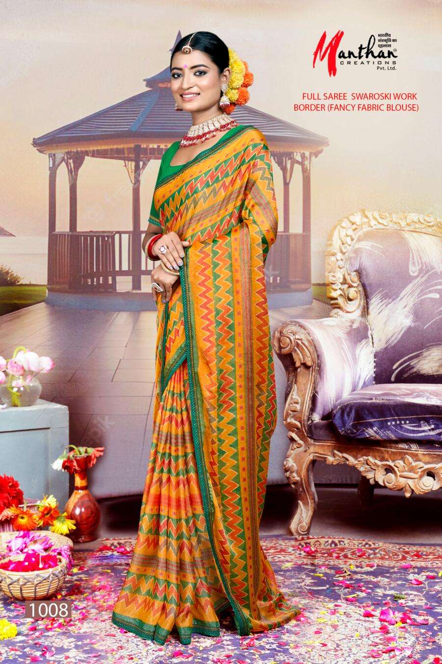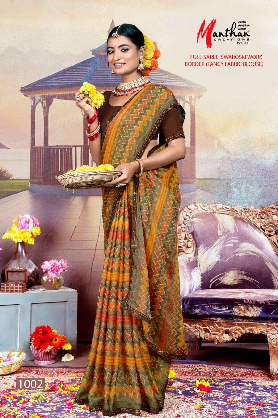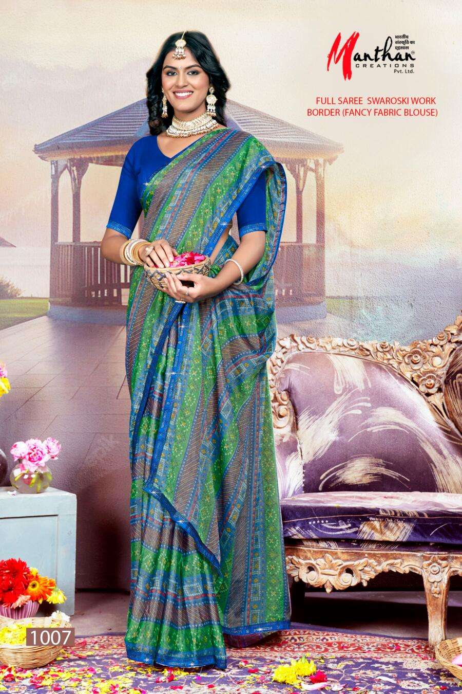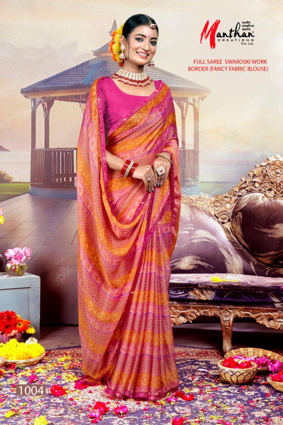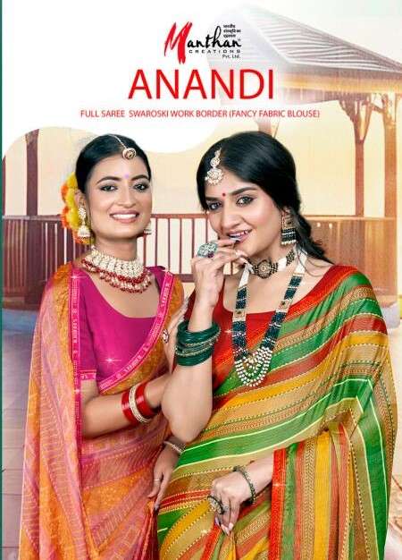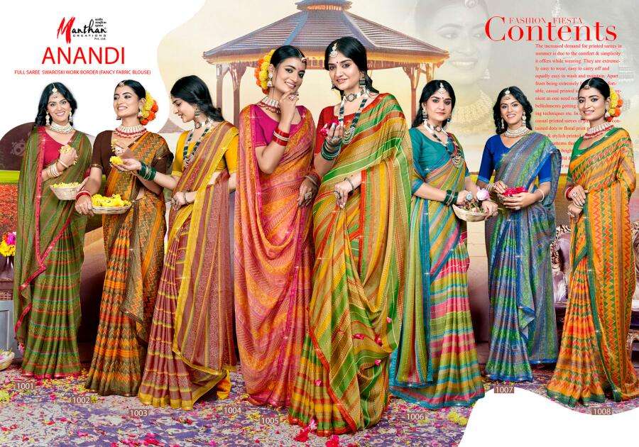 manthan creation anandi beautiful chiffon brasso casual wear sarees supplier